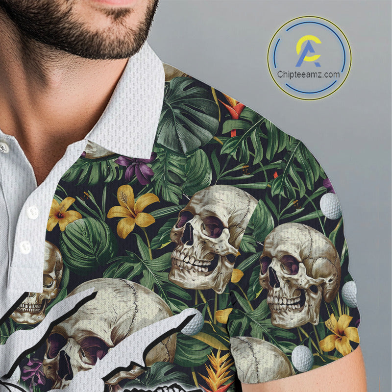 Funny Mens Golf Polo Shirt Custom Tropical Golf Ball Pattern Personalized Skull Golf Shirts For Men NHN0047