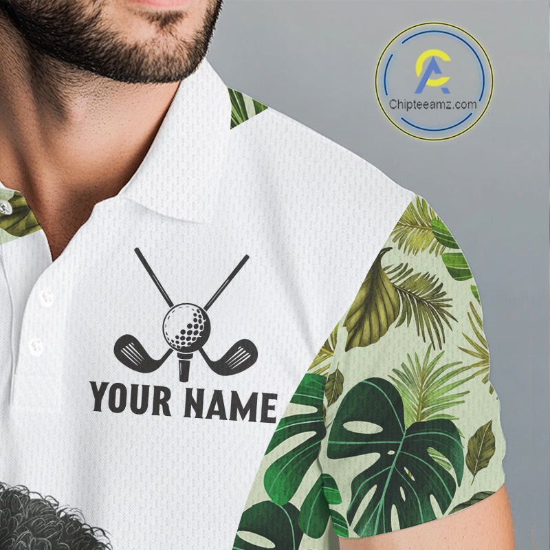 Funny Mens Golf Polo Shirt Custom Tropical Leaf Pattern Personalized Poodle Dog Golf Shirts For Men NHN0067