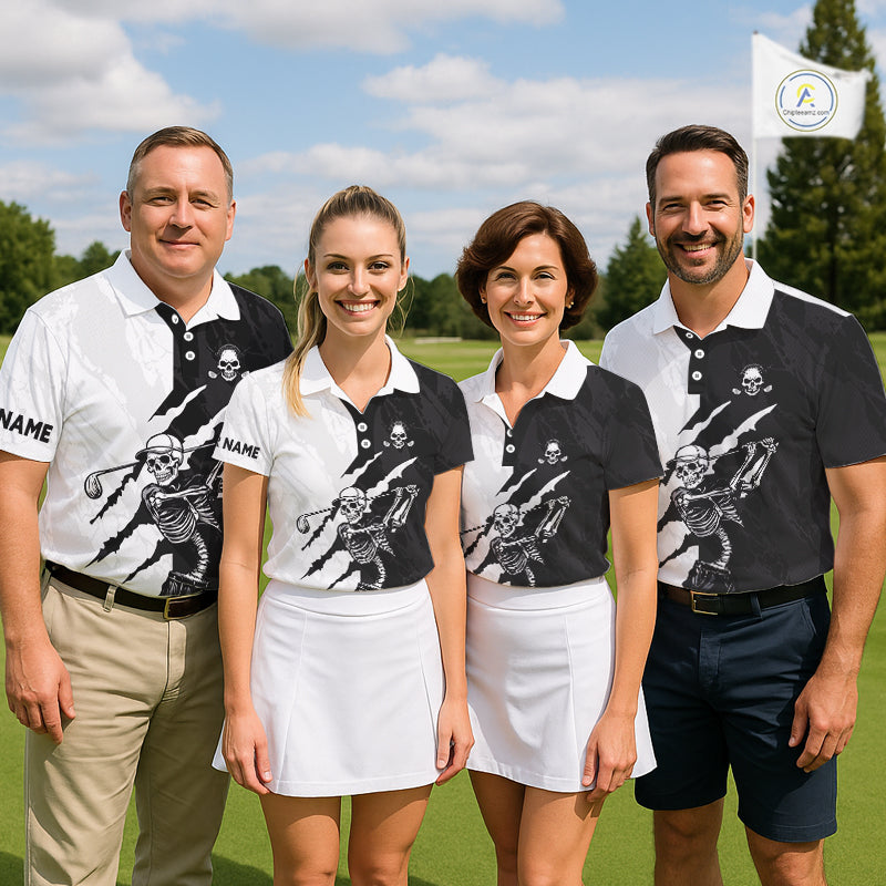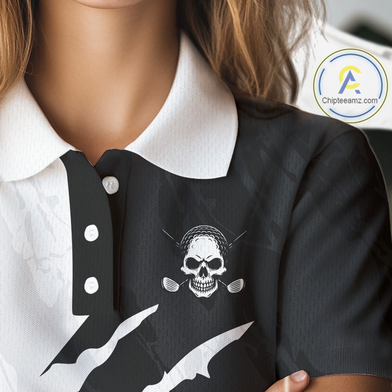 Funny Skull Golf Polo Shirts For Women Black And White Golf Camo Pattern Custom Skull Playing Golf Apparel NHN0047