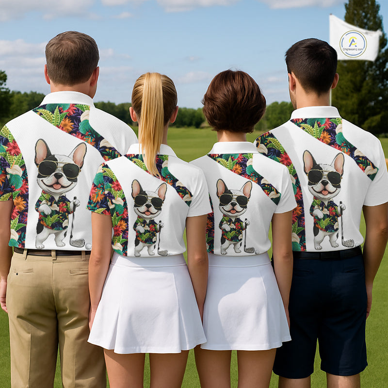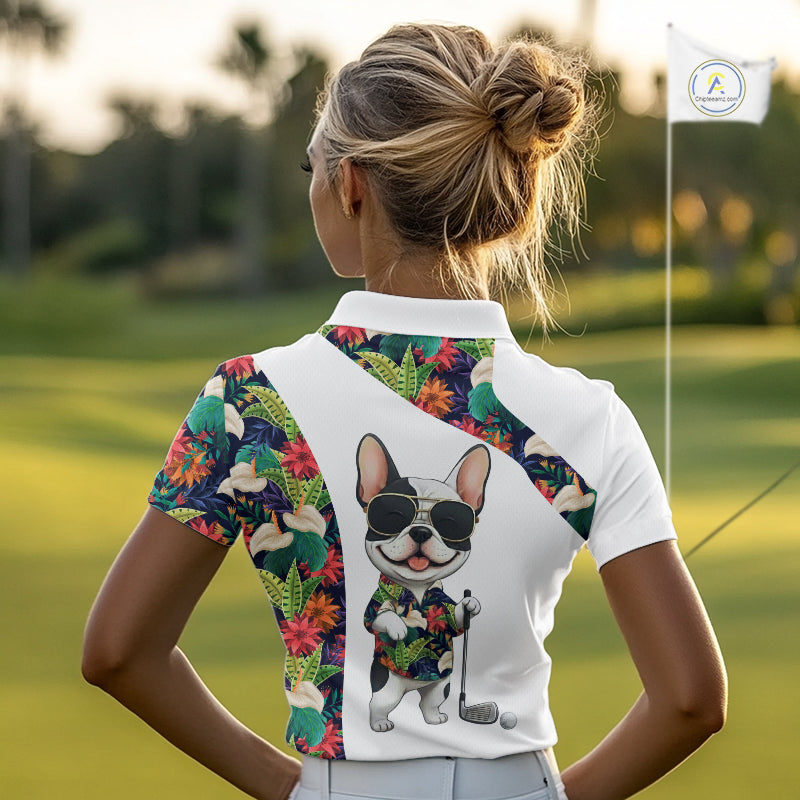 Funny Womens Golf Polo Shirt Custom Tropical Leaf Pattern Personalized Bulldog Golf Shirts For Women NHN0067