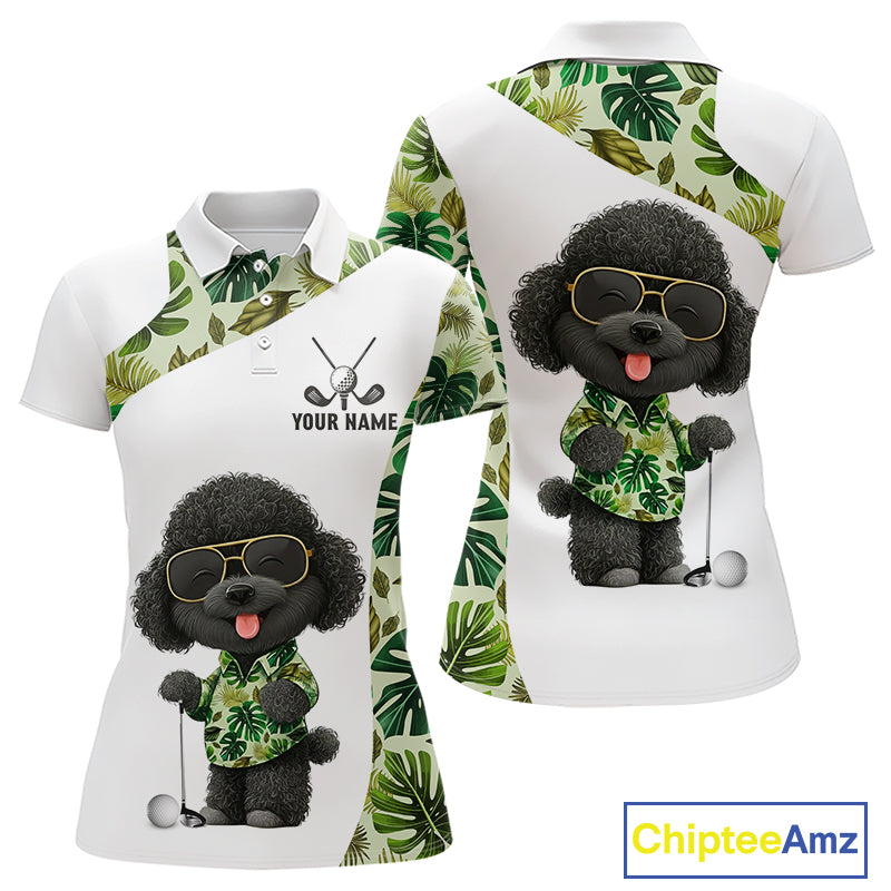 Funny Womens Golf Polo Shirt Custom Tropical Leaf Pattern Personalized Poodle Dog Golf Shirts For Women NHN0067