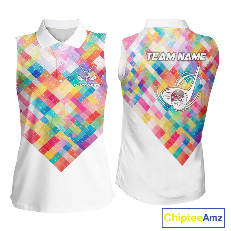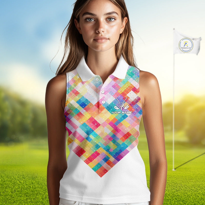 Geometric Pink Womens Sleeveless Golf Polo Shirt Custom Name Golf Shirts For Ladies, Golf Gifts NHN0089