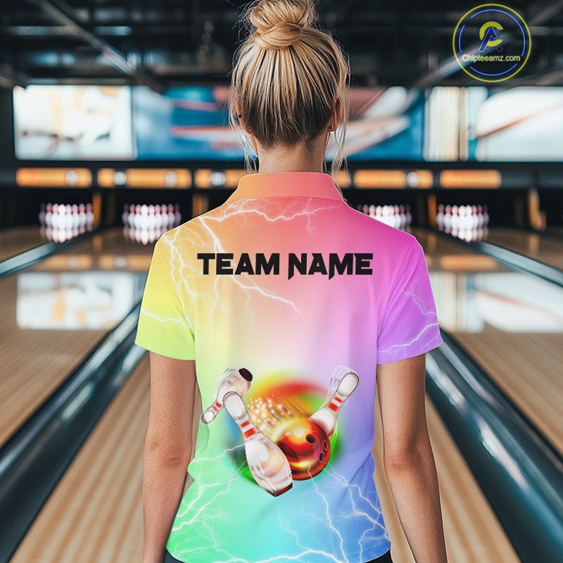 Gradient colorful rainbow lightning thunder storm Bowling Shirts for Women Custom Team Bowling jerseys NQS9941