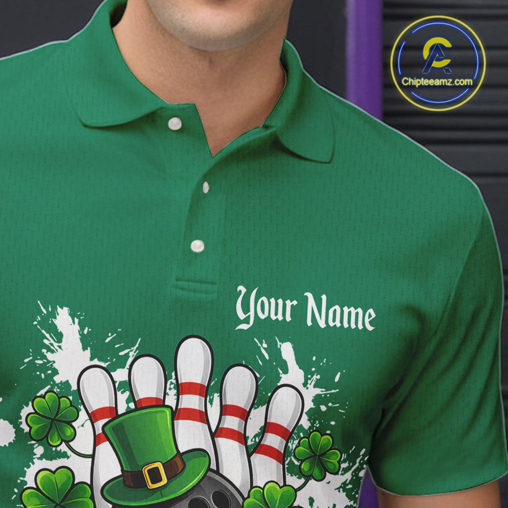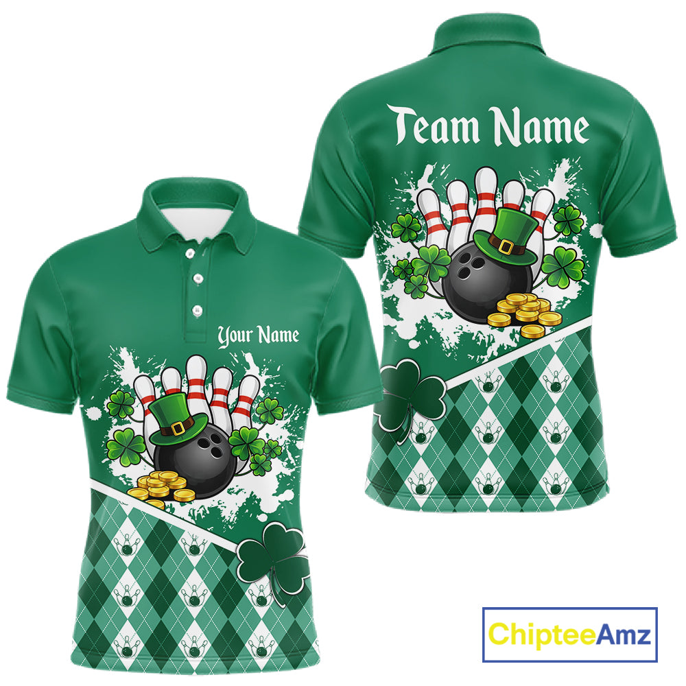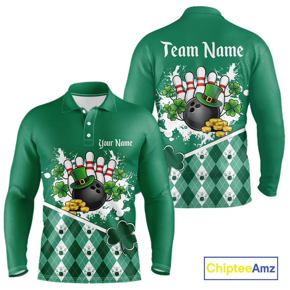 Green argyle pattern St Patrick Bowling Polo, 1/4 zip shirts for Men Custom team bowling jerseys NQS11477