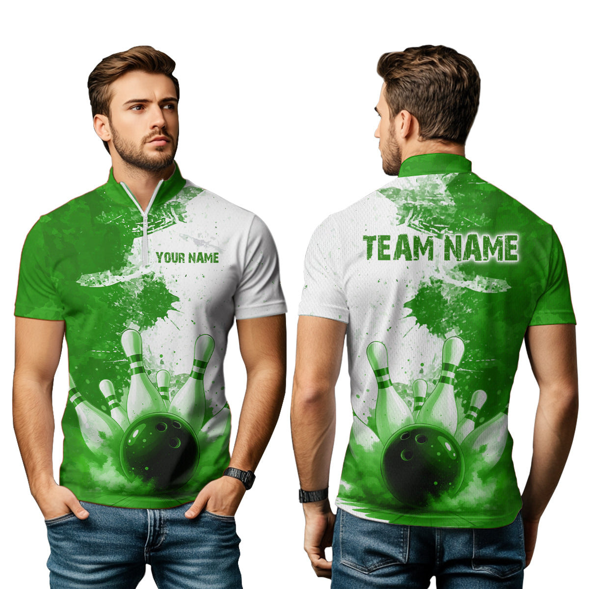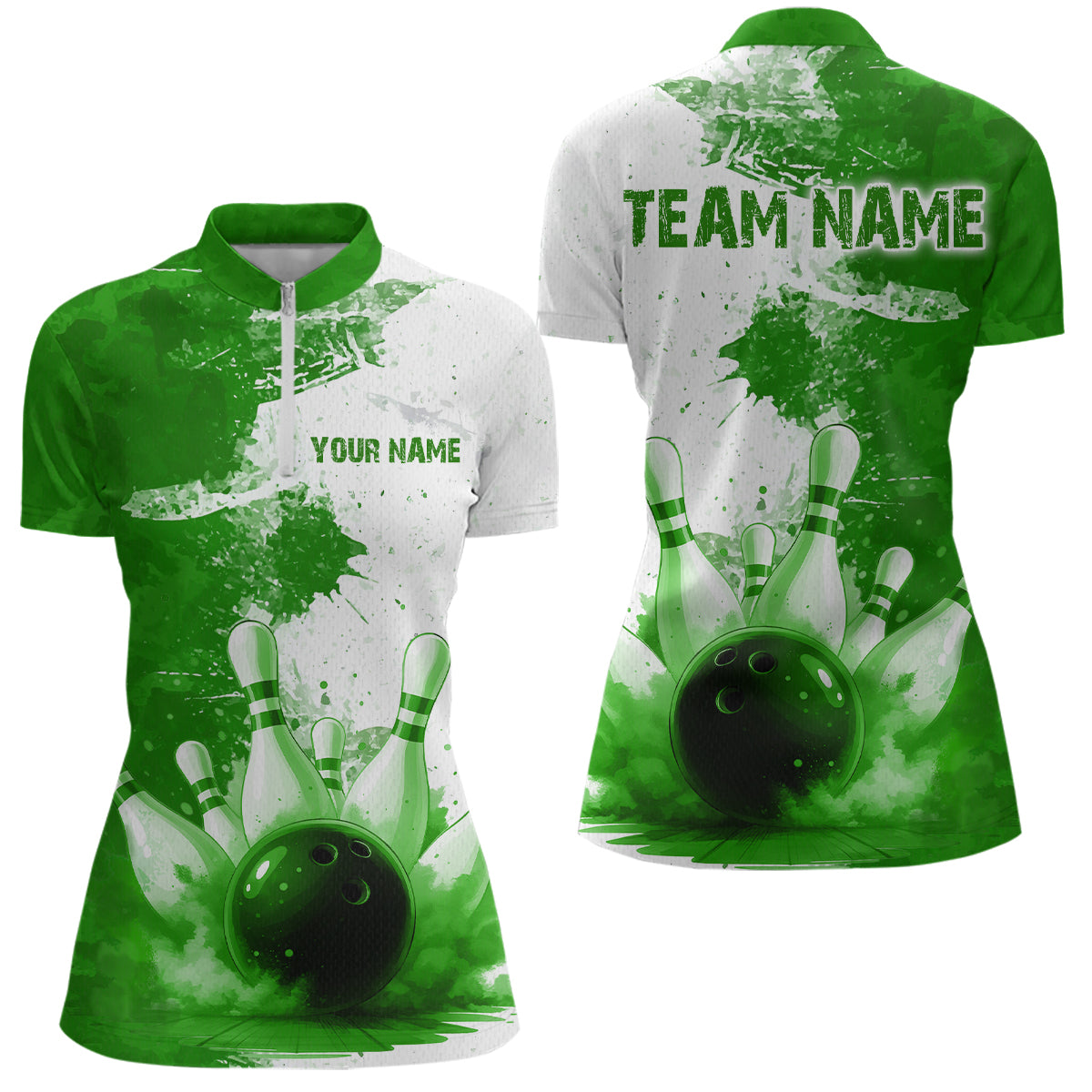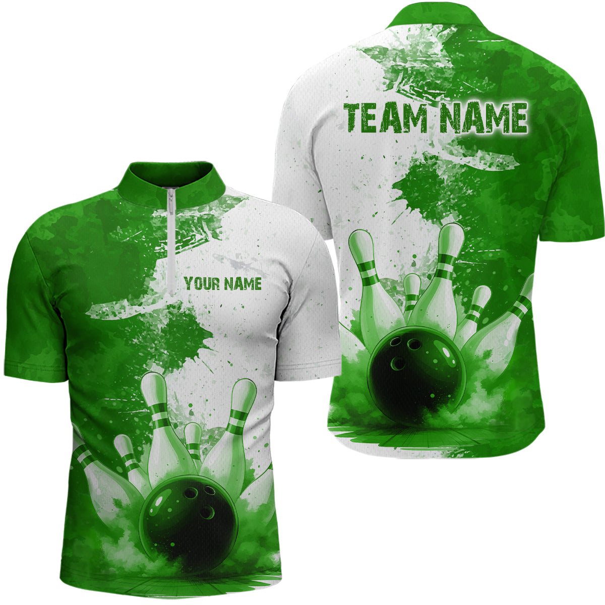 Green Bowling Shirts for Women Men Custom Bowling Polo & 1/4 Zip Shirt for Team MBL220