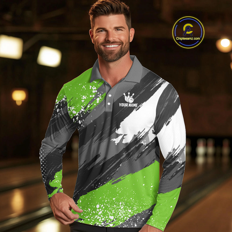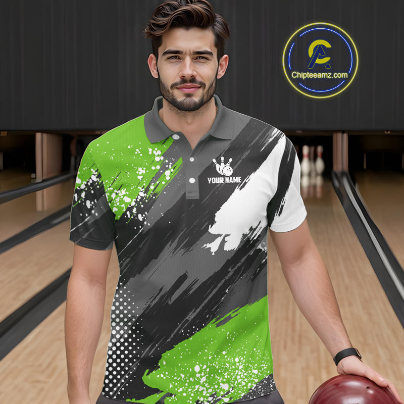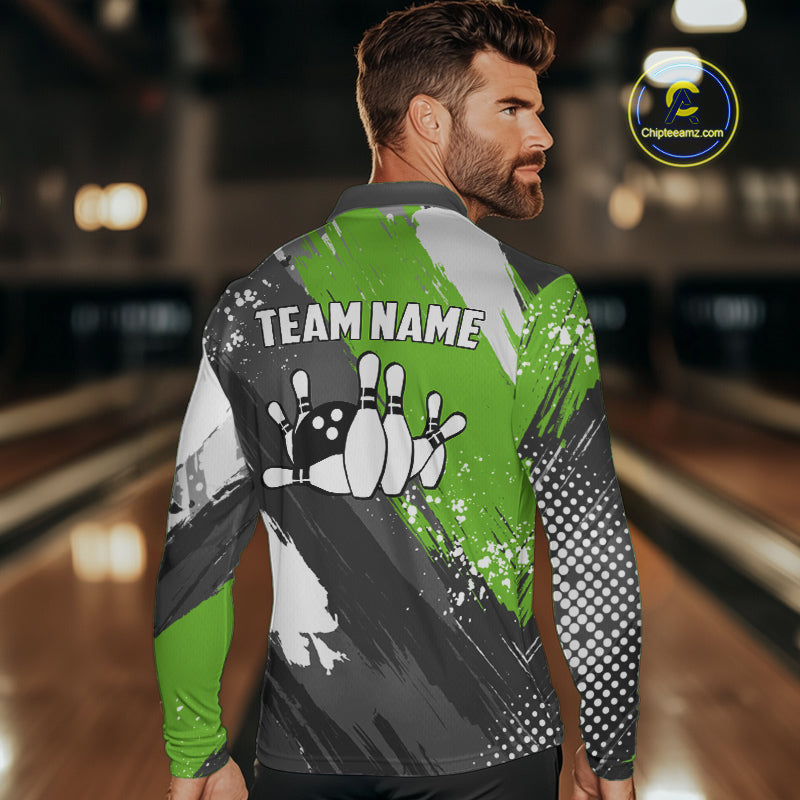 Green Grunge pattern Bowling Team Shirt For Men Custom Bowling jersey Uniform Bowler Outfits NQS10042