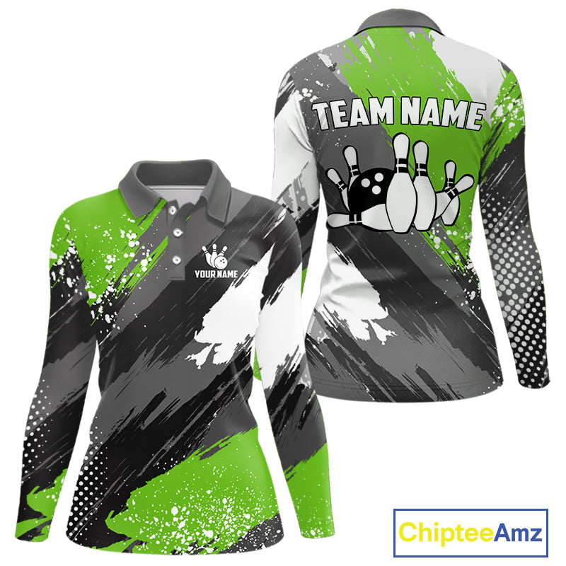 Green Grunge pattern Bowling Team Shirt For Women Custom Bowling jersey Uniform Bowler Outfits NQS10042