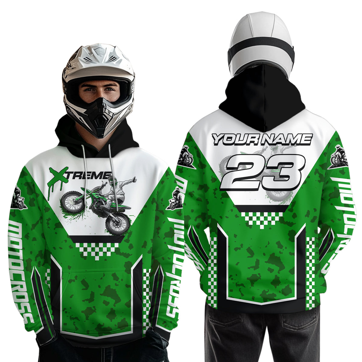 Green Motocross Hoodie Dirt Bike Hoodie Kid Adults UPF30+ Custom Racing Sweatshirt MotoX MHT300