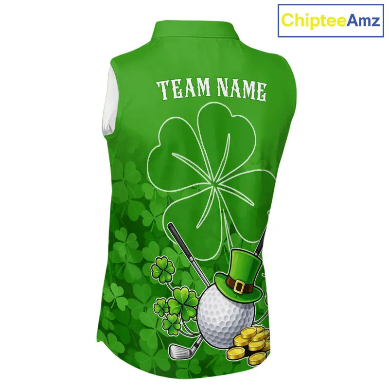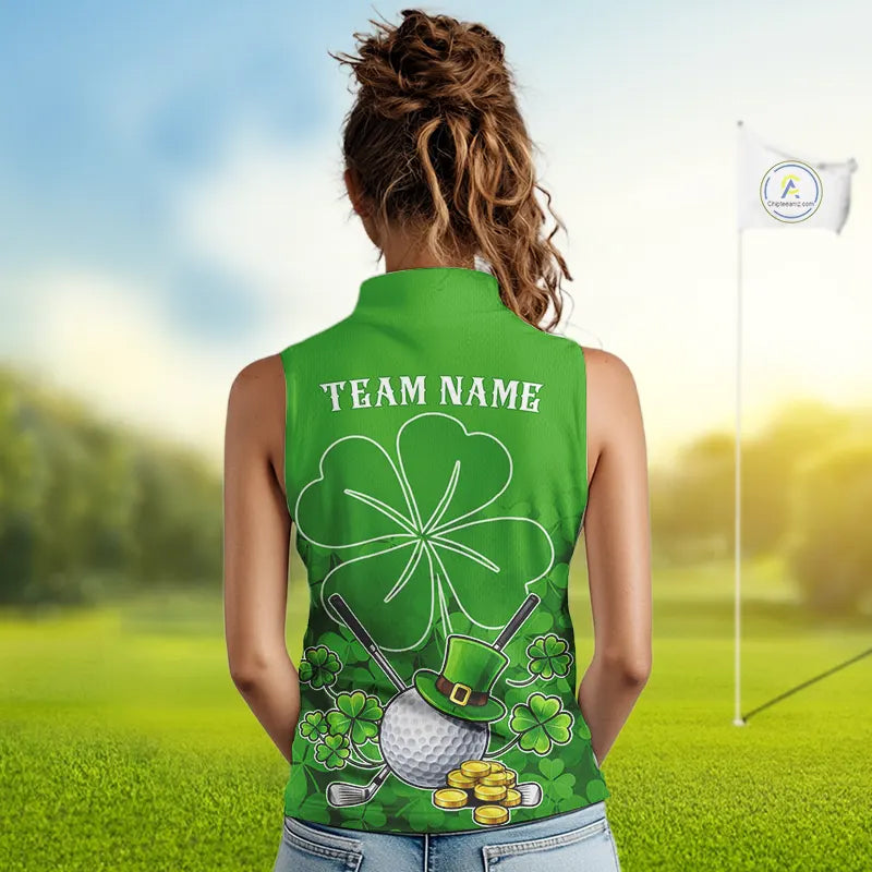 Green shamrock pattern St Patrick's Day Women's Sleeveless golf polo shirts custom ladies golf tops NQS11495