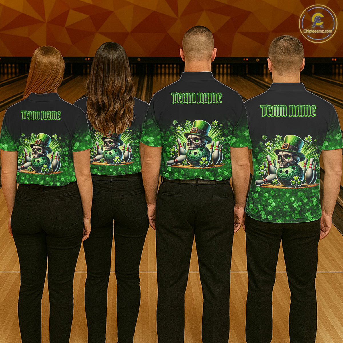 Green shamrock St Patrick's Day Eagle Skull Men's Bowling Shirts Custom Lucky Bowling Team Jersey NQS11287