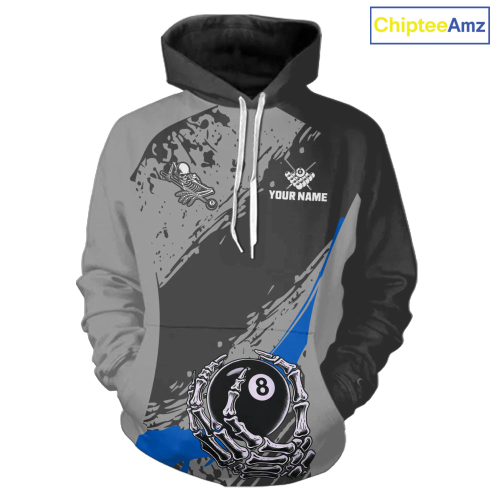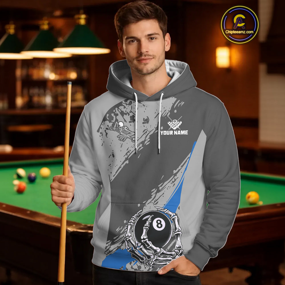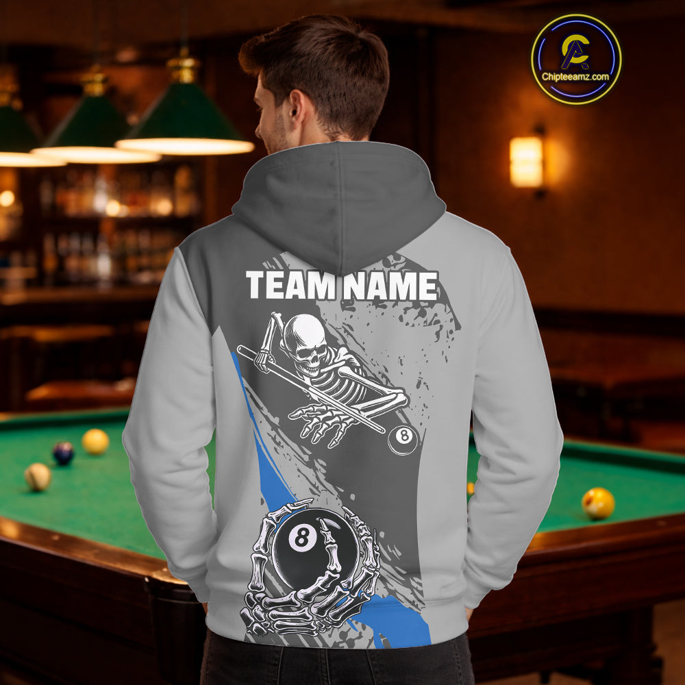 8 Ball Skeleton Billiard Hoodie For Men And Women Custom 8 Ball Hoodie Pool Team Jersey |Blue TDM5677