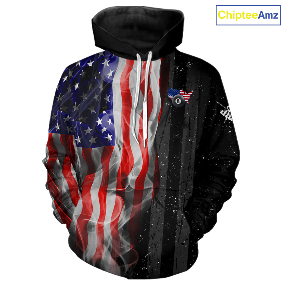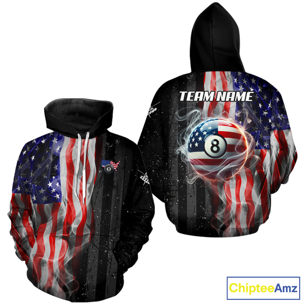 Personalized American Flag Smoke Billiard Hoodie Custom Patriotic 8 Ball Hoodie Pool Team Jersey TDM5679
