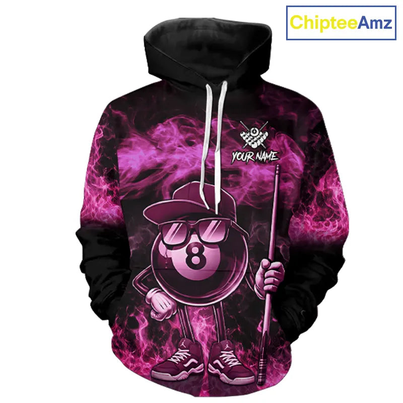 Pink Funny 8 Ball Pool Flame Smoke Billiard Hoodie For Men And Women Custom 8 Ball Hoodie Jersey TDM5693