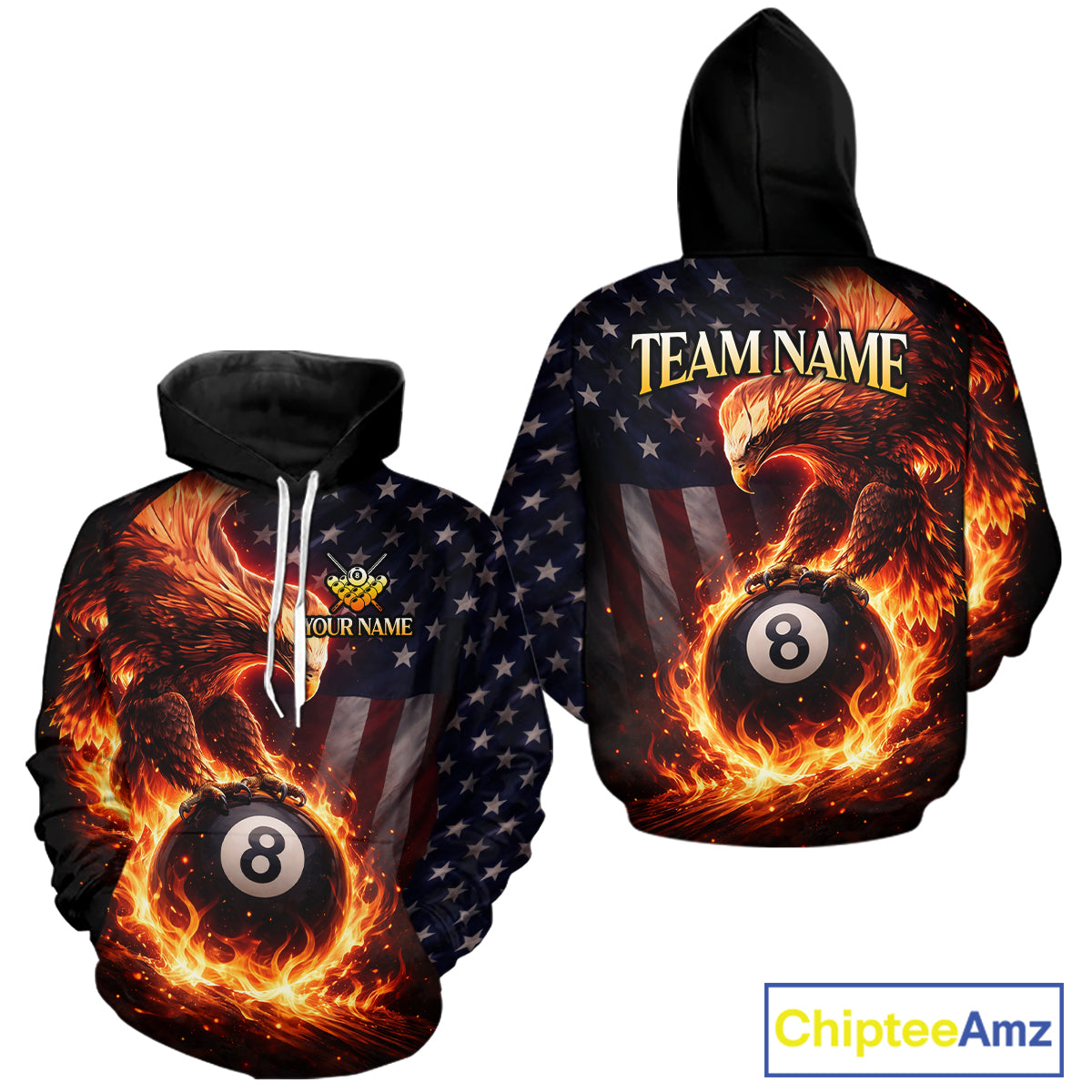 American Flag Flame 8 Ball Eagle Billiard Hoodie For Men And Women Custom 8 Ball Hoodie Team Jersey TDM5787