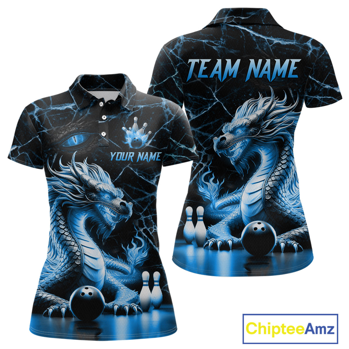 Ice Dragon Bowling Shirt Custom Bowling Team League Polo Bowling Jersey Bowlers Gift QZT692