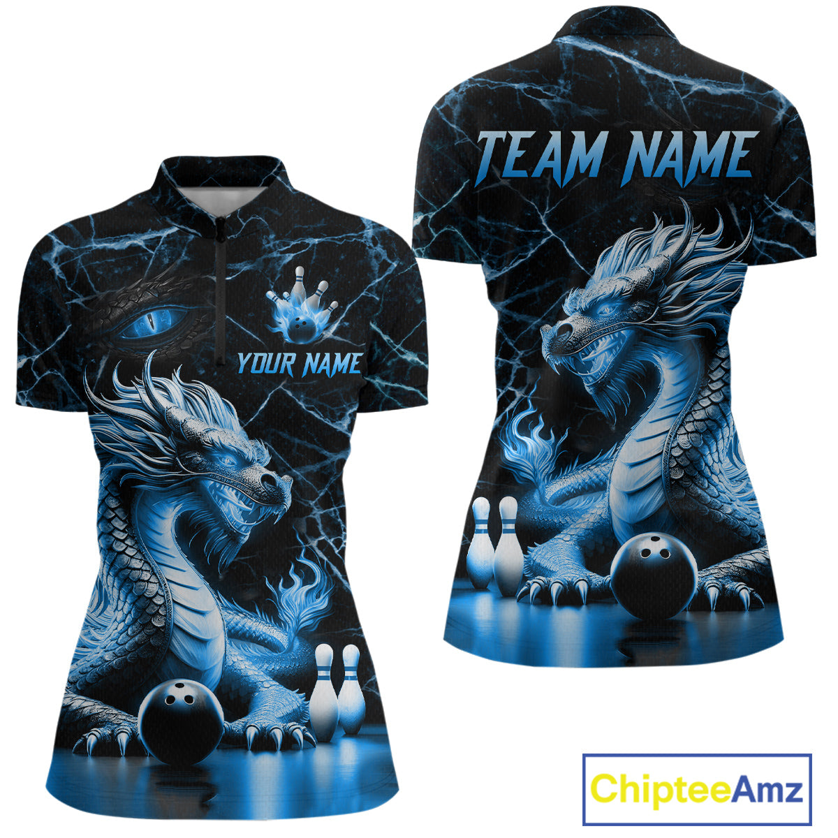 Ice Dragon Bowling Shirt Custom Bowling Team League Quarter-Zip Bowling Jersey Bowlers Gift QZT692