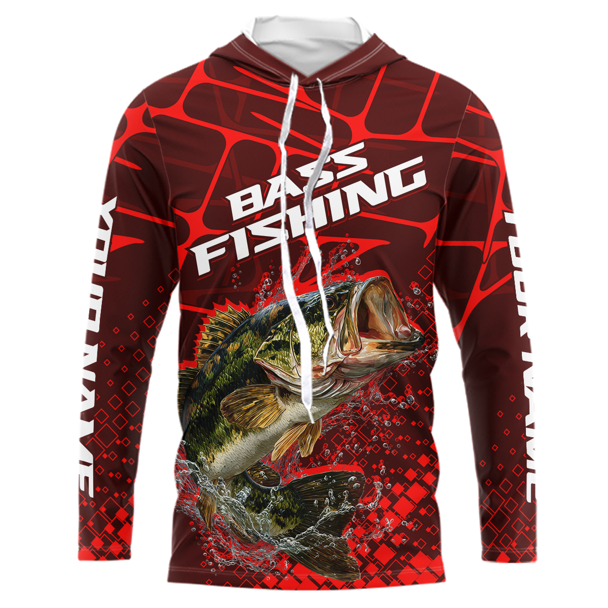 Largemouth Bass Fishing, Fishing Shirts Long Sleeve Hooded UPF Scale, Fishing Gift |Red NHT391