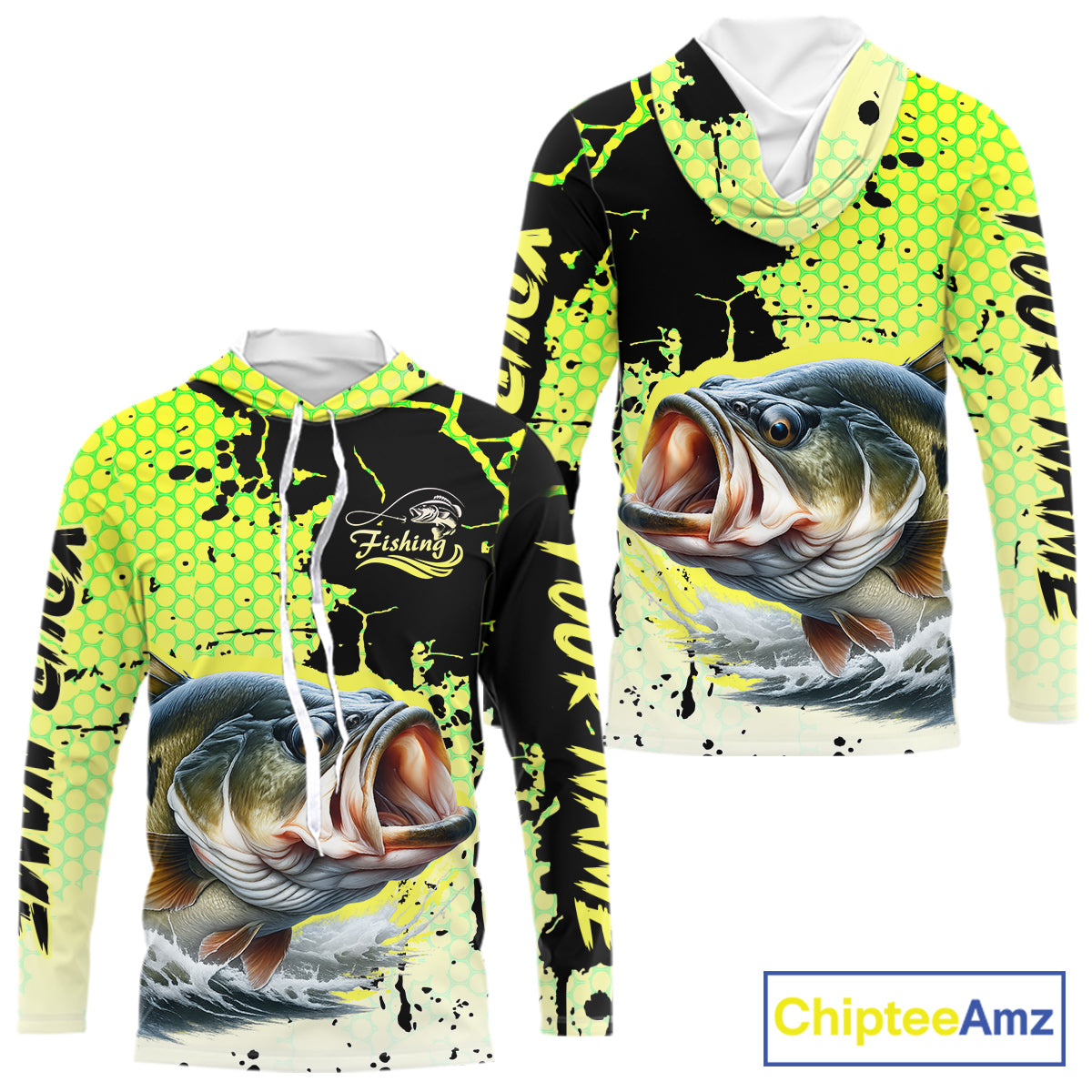 Largemouth Bass Fishing Shirts Long Sleeve Hooded Custom Bass Fishing Apparel NHT406