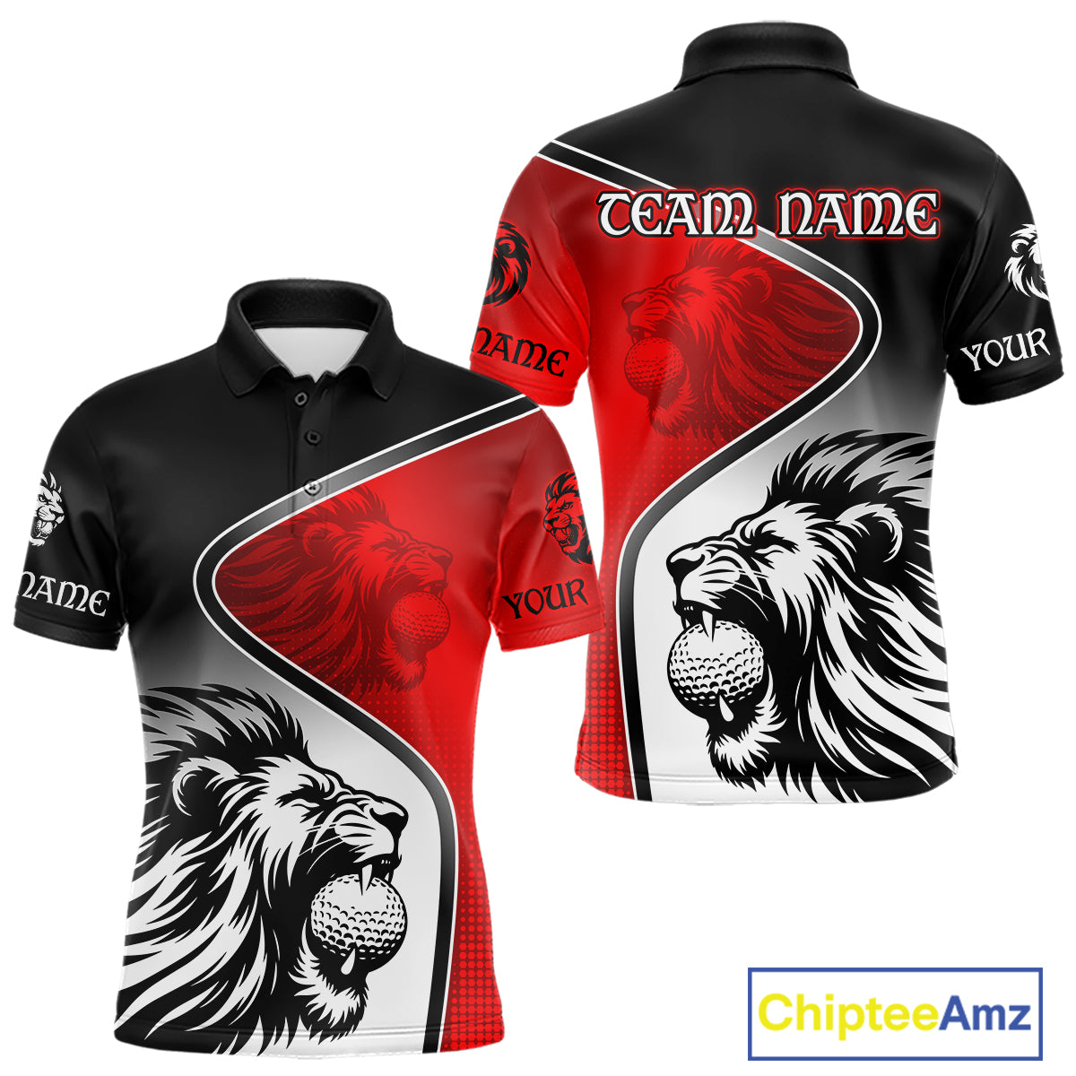 Lion Mens Golf Polo Shirt Custom Red And Black Pattern Lion Golf Ball Best Golf Shirt For Men NHN0058