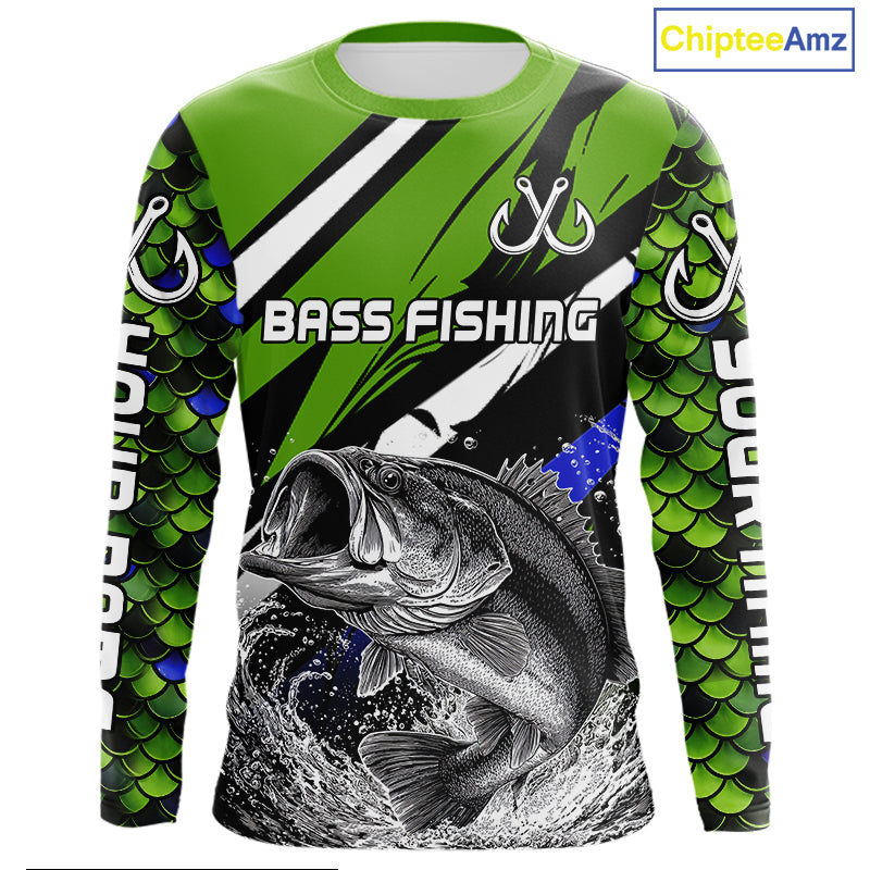 Personalized Green Fish Scale Bass Fishing Jumping Jersey, Custom Performance Bass Shirt NBT346