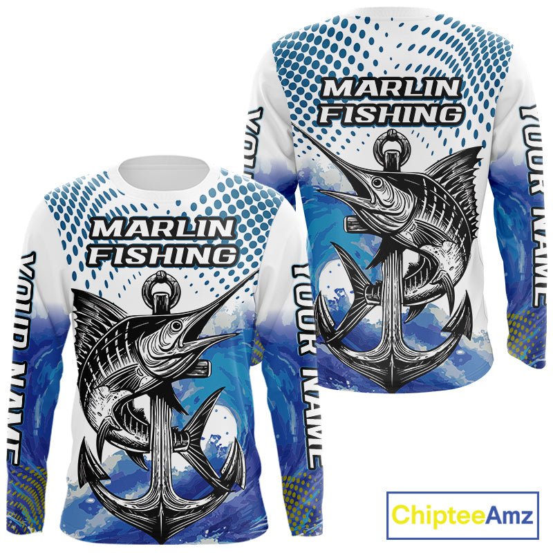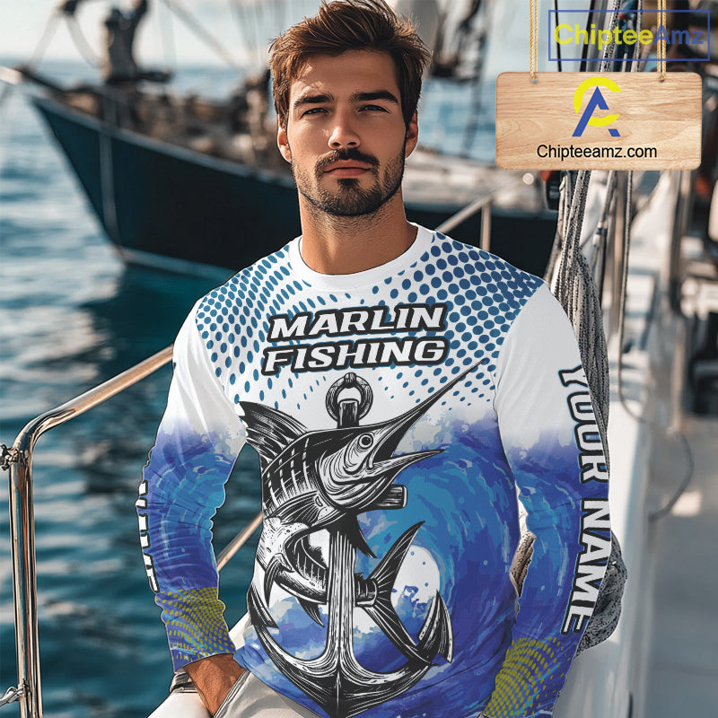 Personalized Blue Marlin Fishing Hood Saltwater Fish Custom Name Tournament Fishing Shirts NBT368