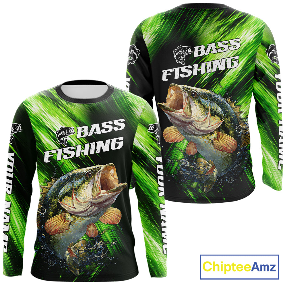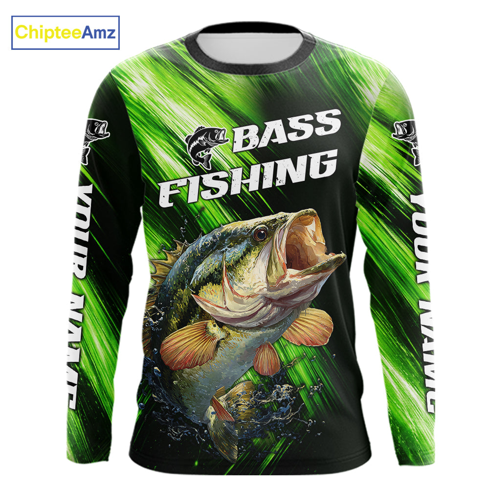 Green Camo Largemouth Bass Fishing Jersey For Men, Bass Fishing Performance Shirts Personalized Gifts NBT370