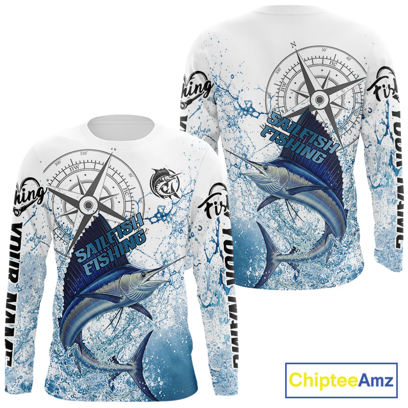 Custom Sailfish Long Sleeve Fishing Shirts Saltwater Fish, Compass Offshore Tournament Fishing Shirts NBT375