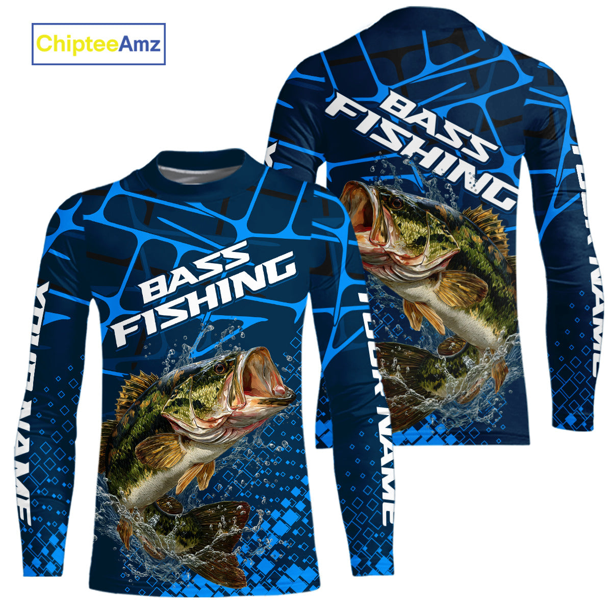 Largemouth Bass Fishing, Kid Fishing Shirts Long Sleeve, Fishing Gift  | Blue NHT385