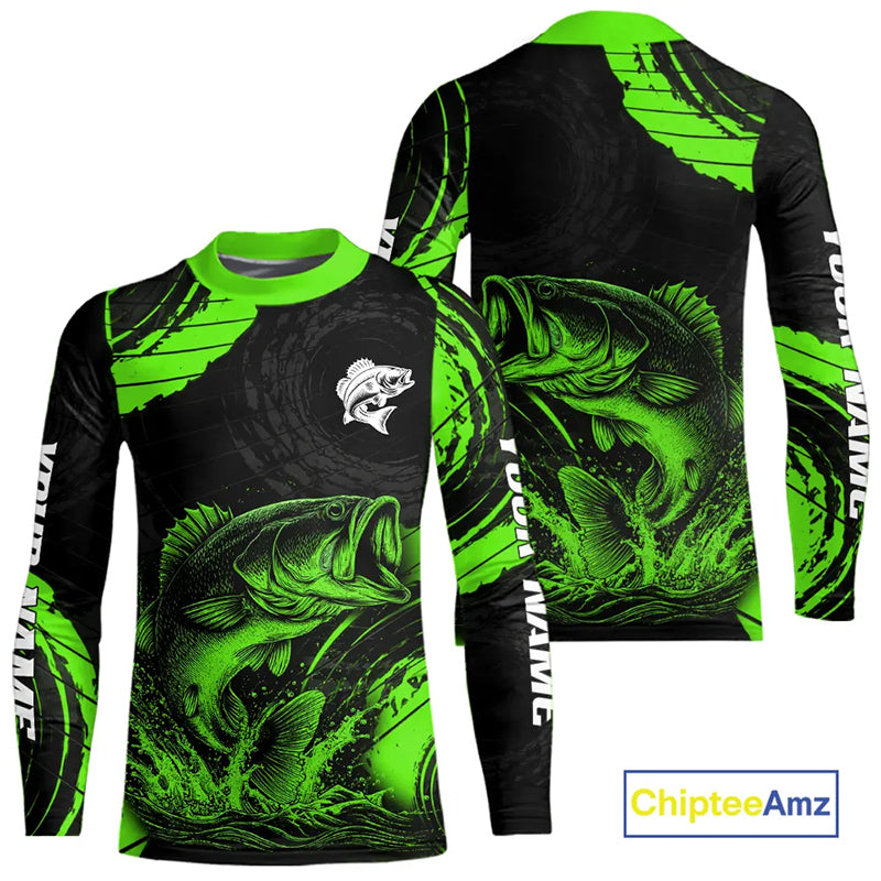 Personalized Bass Fishing Jerseys, Bass Fishing Scale Long Sleeve Shirt| Green NHT386
