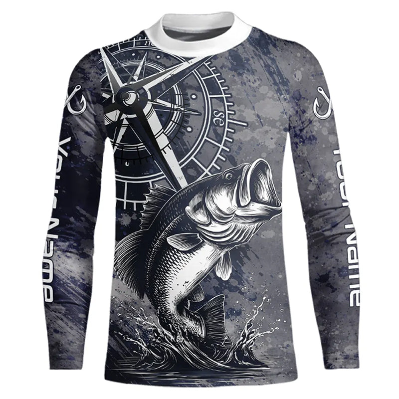 Personalized Bass Performance Fishing Shirts , Bass Compass Tournament Shirts NHT389