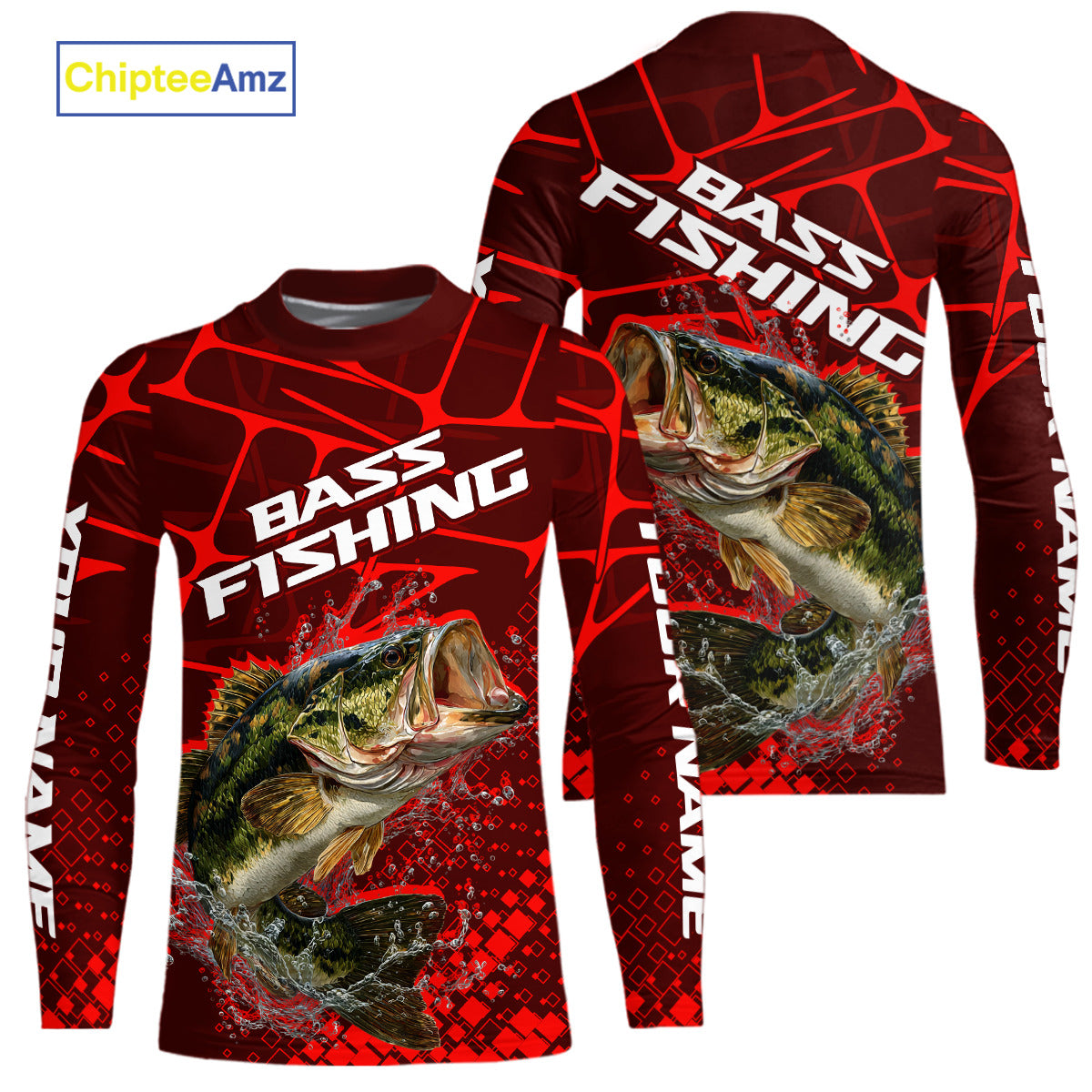 Largemouth Bass Fishing, Kid Fishing Shirts Long Sleeve Scale, Fishing Gift |Red NHT391