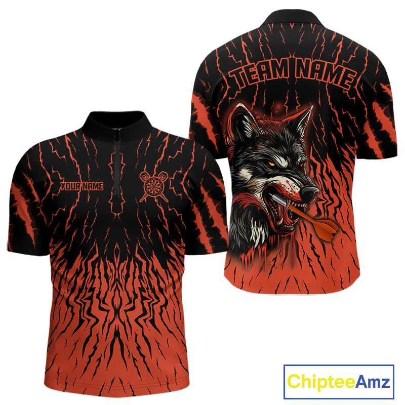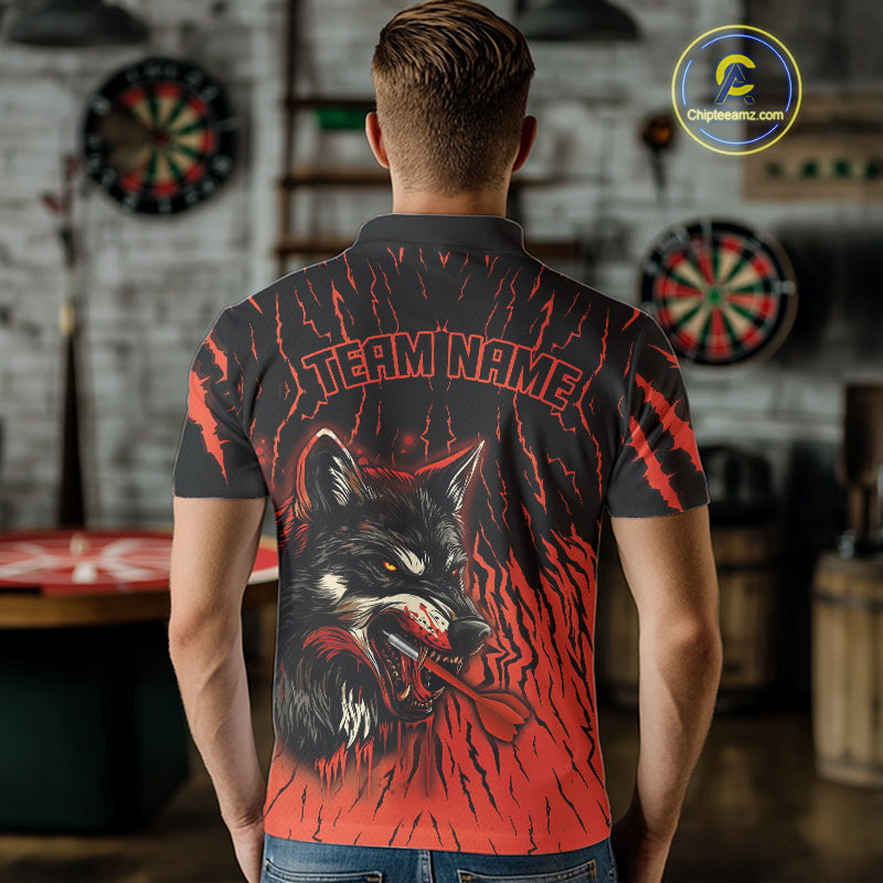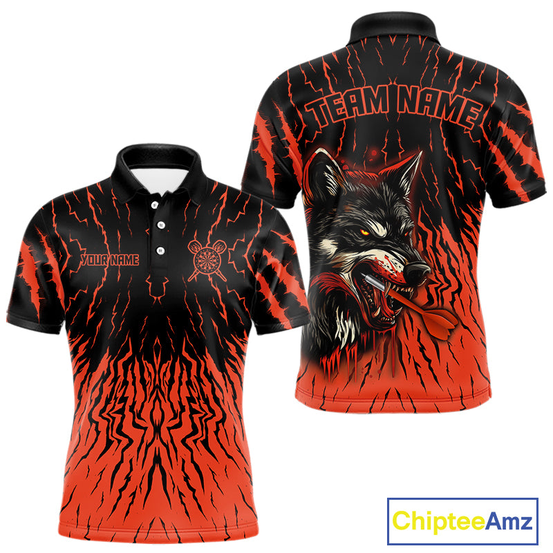 Vibrant Red-Orange Wolf Dart Arrow Shirt Custom Dart Shirt For Men, Dart Jerseys NYN0243