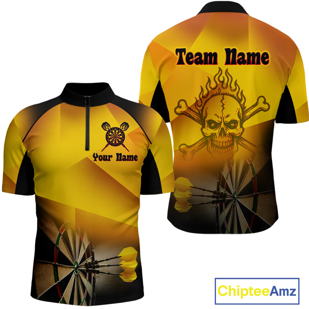 Men's Personalized Dart Shirts With Fire Skull And Yellow Darts Theme NYN0256