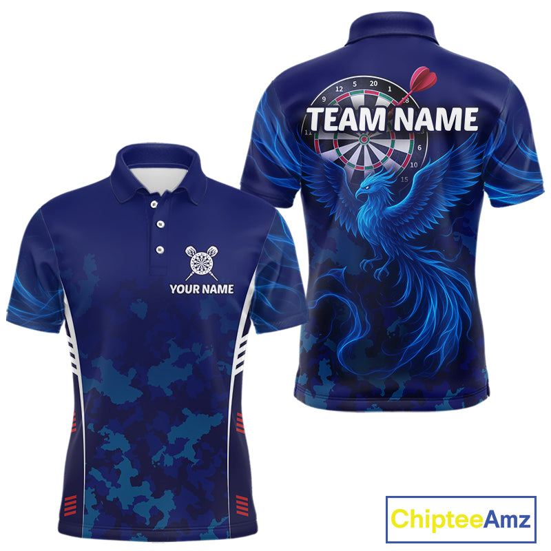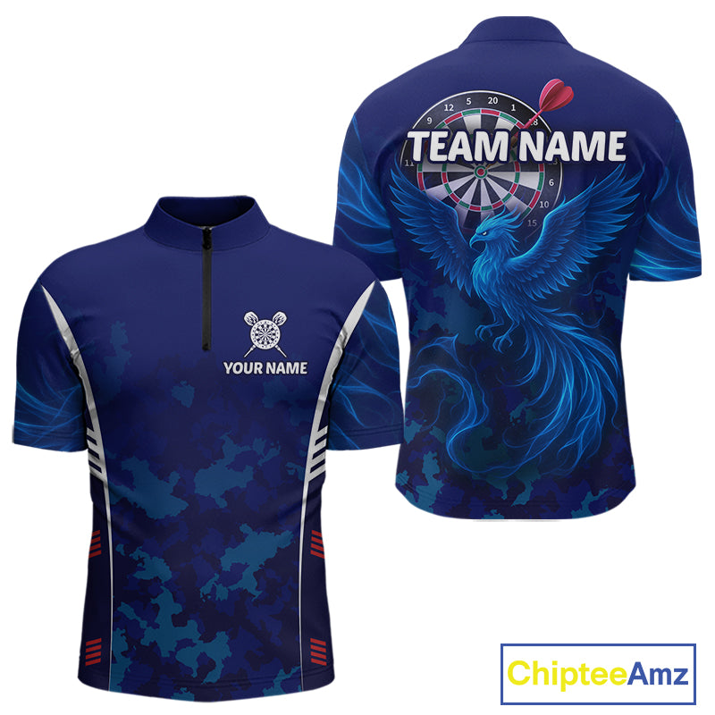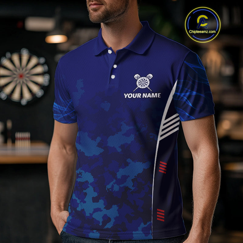 Men's Custom Darts Shirt With Cobalt Phoenix Camouflage Pattern And Dartboard NYN0263