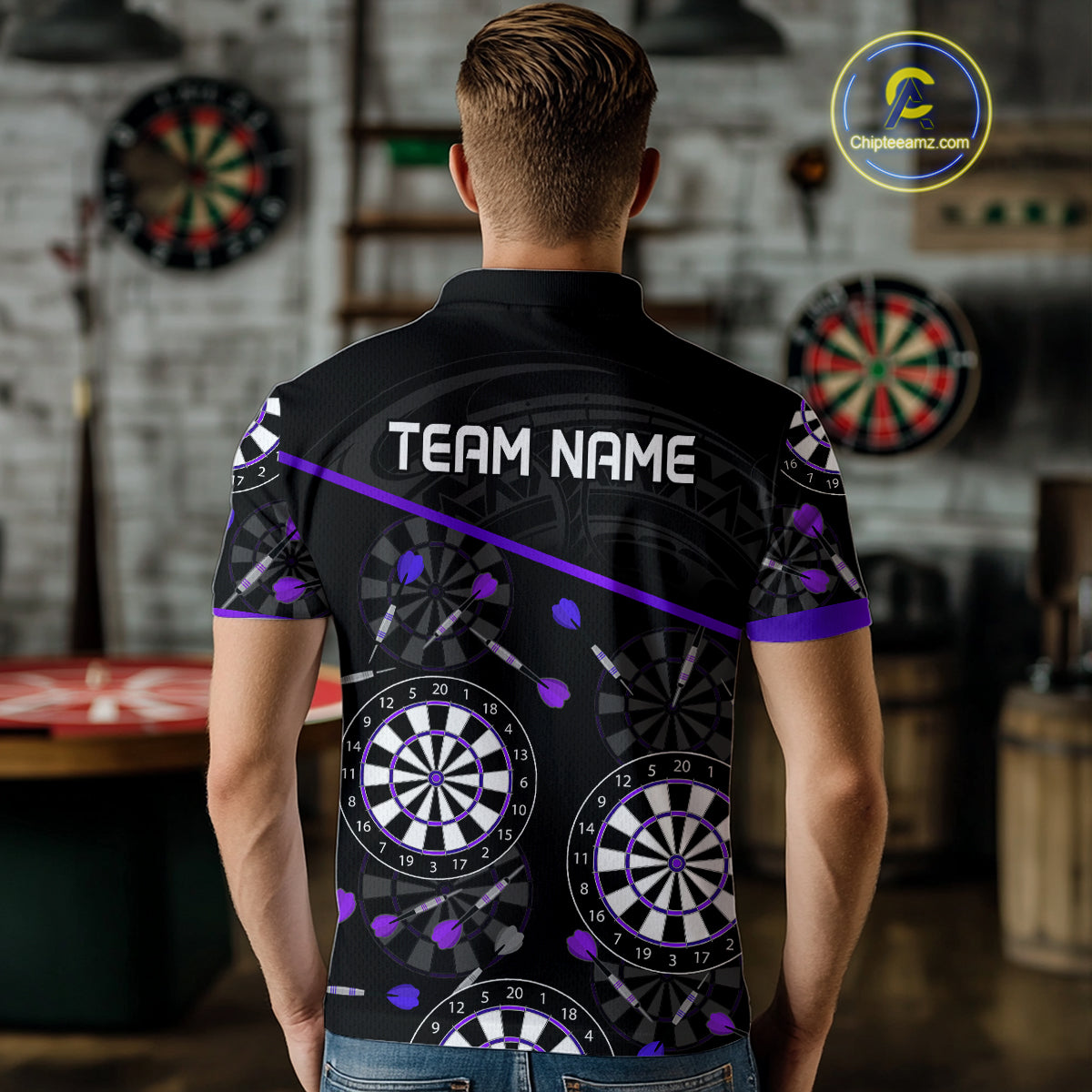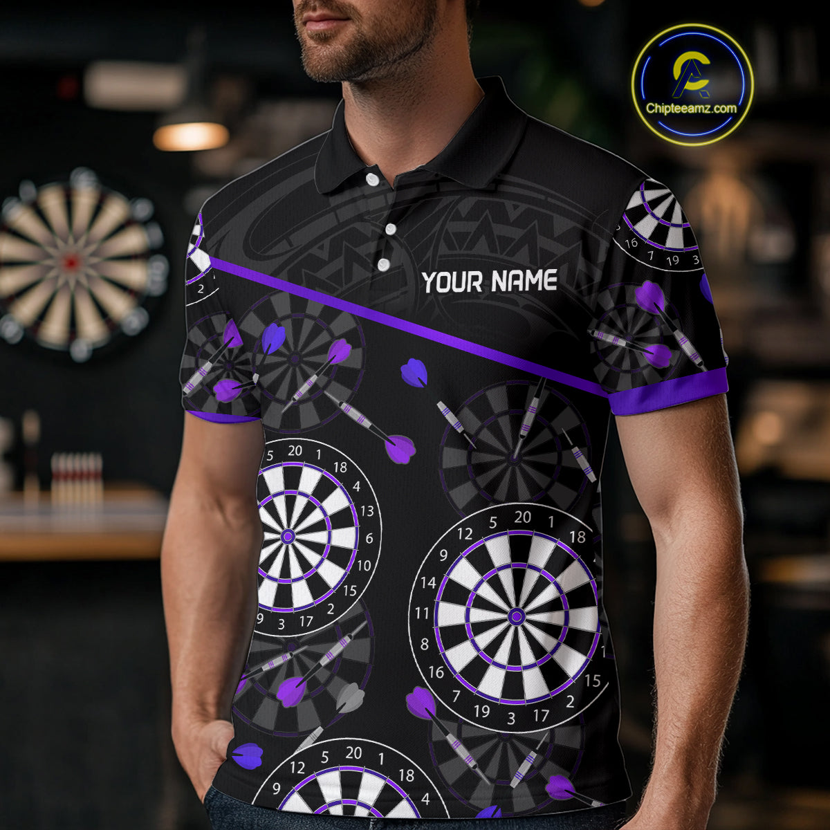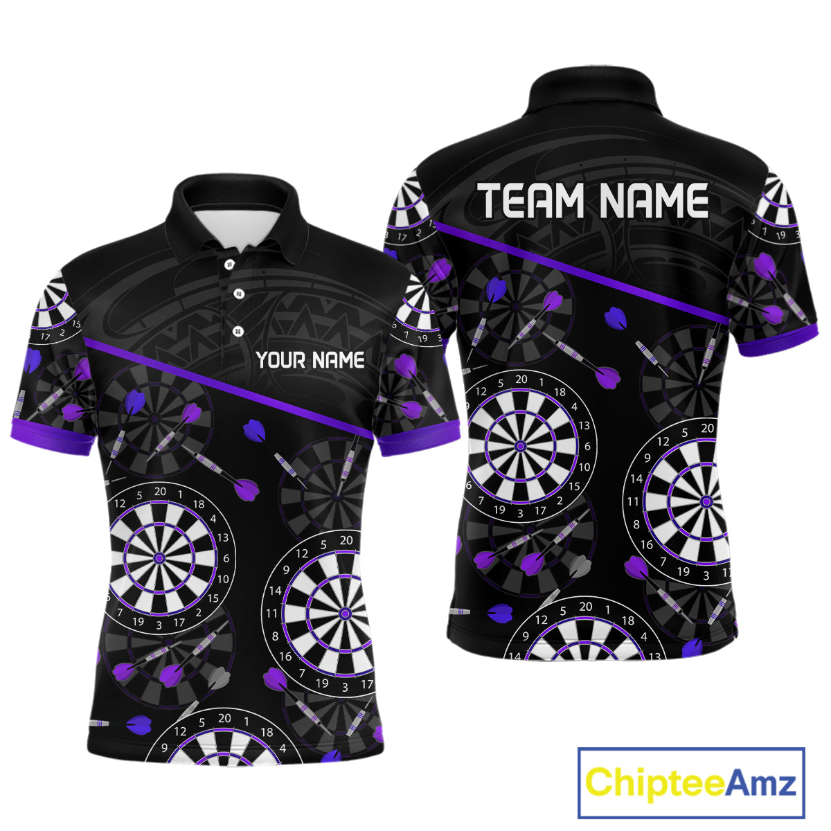 Men's Custom Darts Shirt With Purple-Black Dartboard And Arrows Pattern NYN0264