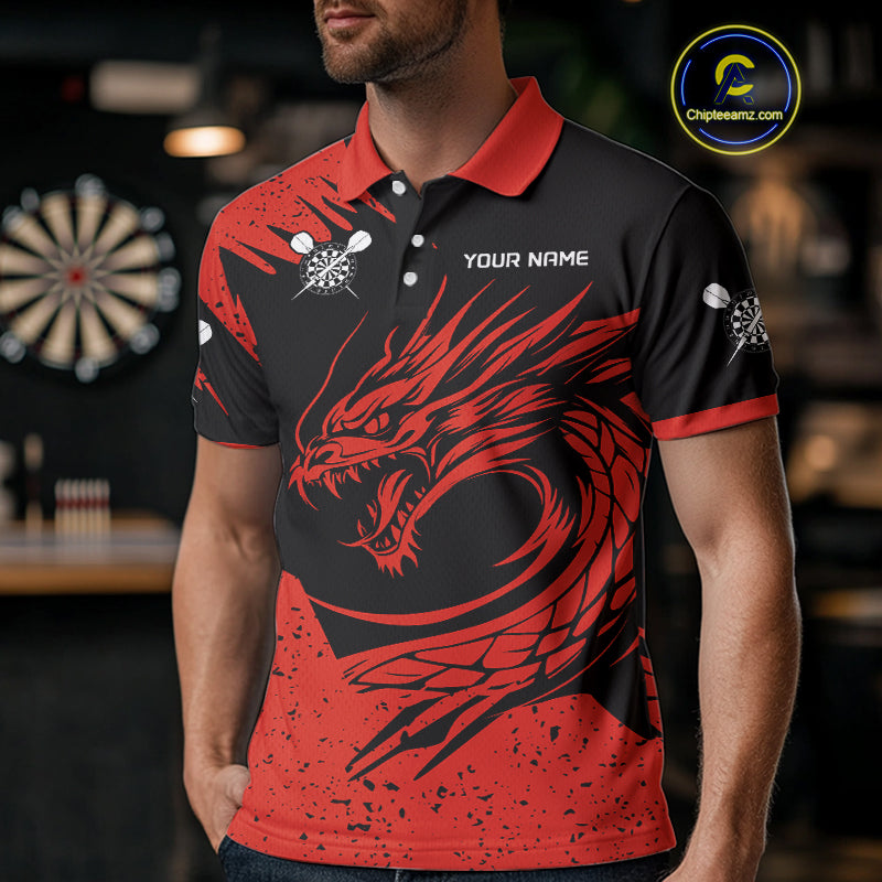 Men's Dart Team Jersey Featuring A Blood Dragon And Red Dartboard, Darts Jersey NYN0271