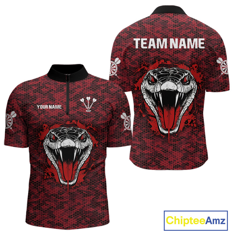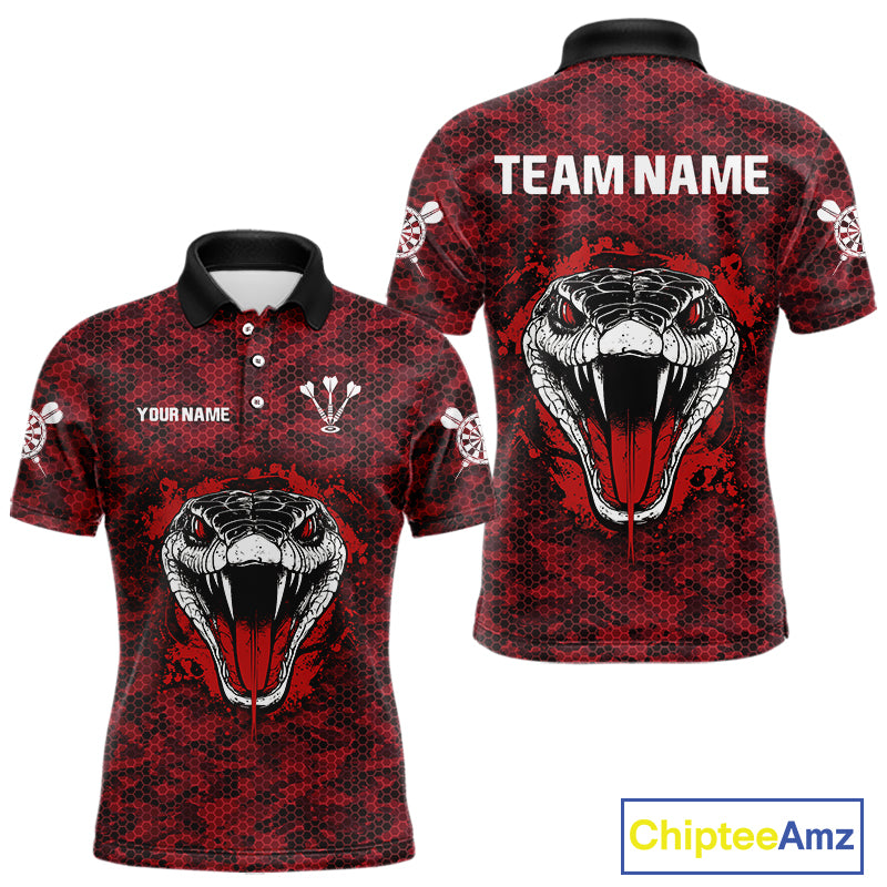 Men’s Darts Team Shirt Featuring Fierce Scarlet Cobra Head Snakeskin Pattern NYN0279