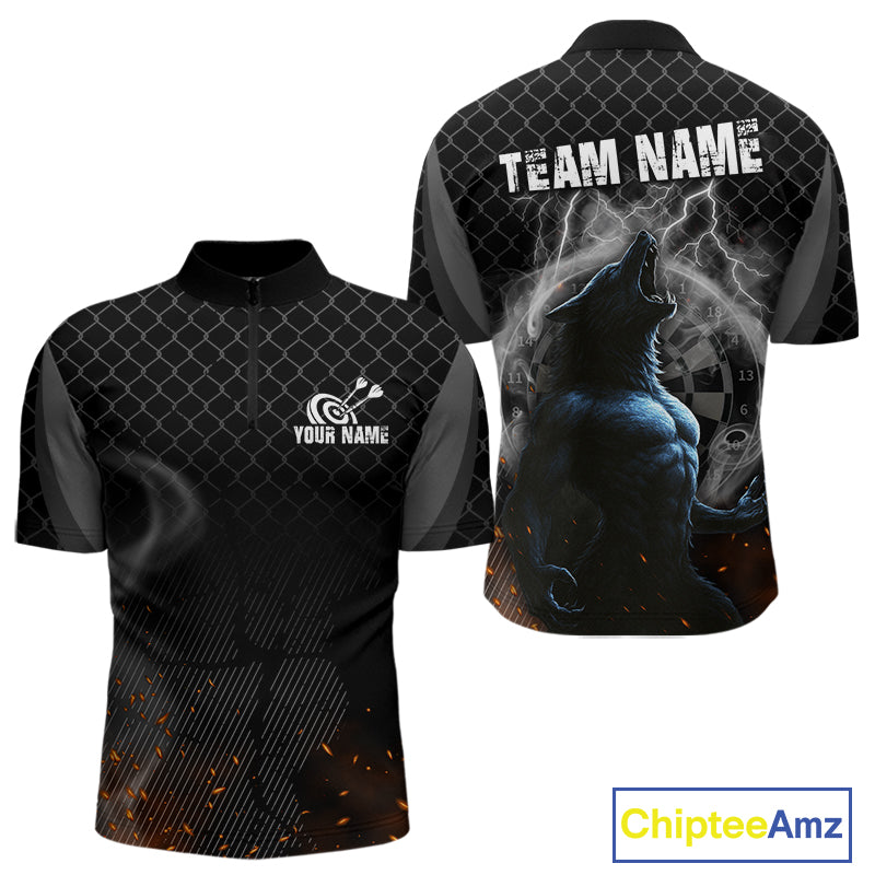 Men's Custom Darts Jersey With Thunder Wolfs & Dark Geometric Pattern NYN0283