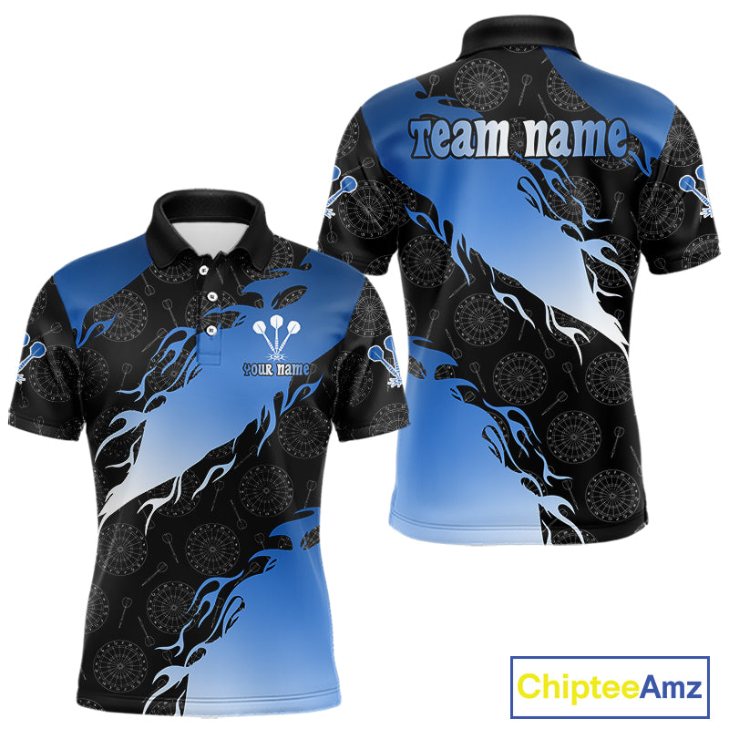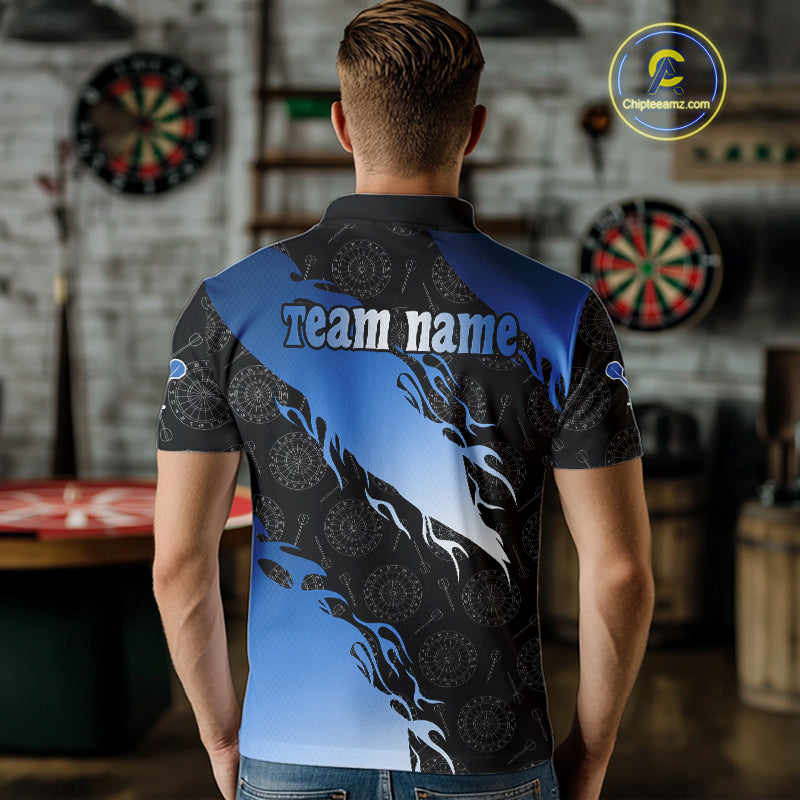 Custom Men's Darts Shirt With Cobalt Flames & Black Dartboard Pattern, Darts Jersey NYN0291
