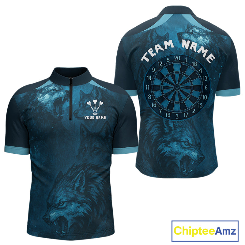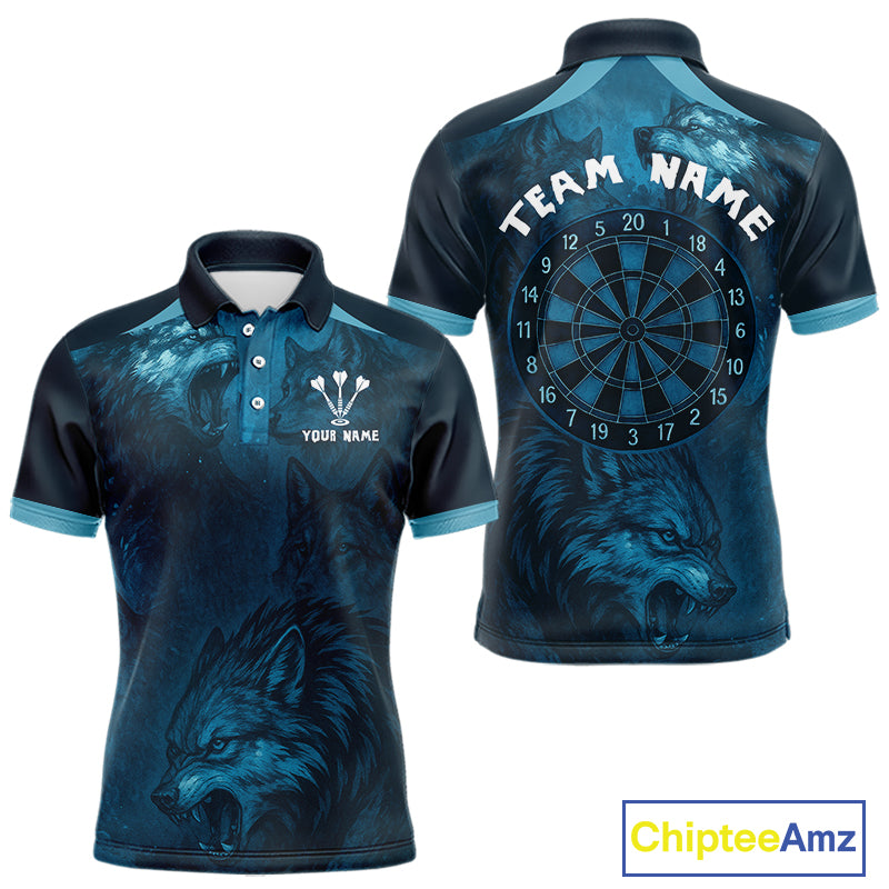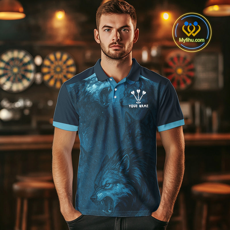 Men’s Team Darts Shirt With Dark Navy Wolves And Grunge Dartboard Pattern NYN0306