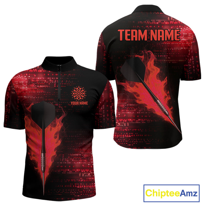 Men’s Custom Darts Shirt With Flaming Dart Arrow And Ruby Digital Matrix NYN0310