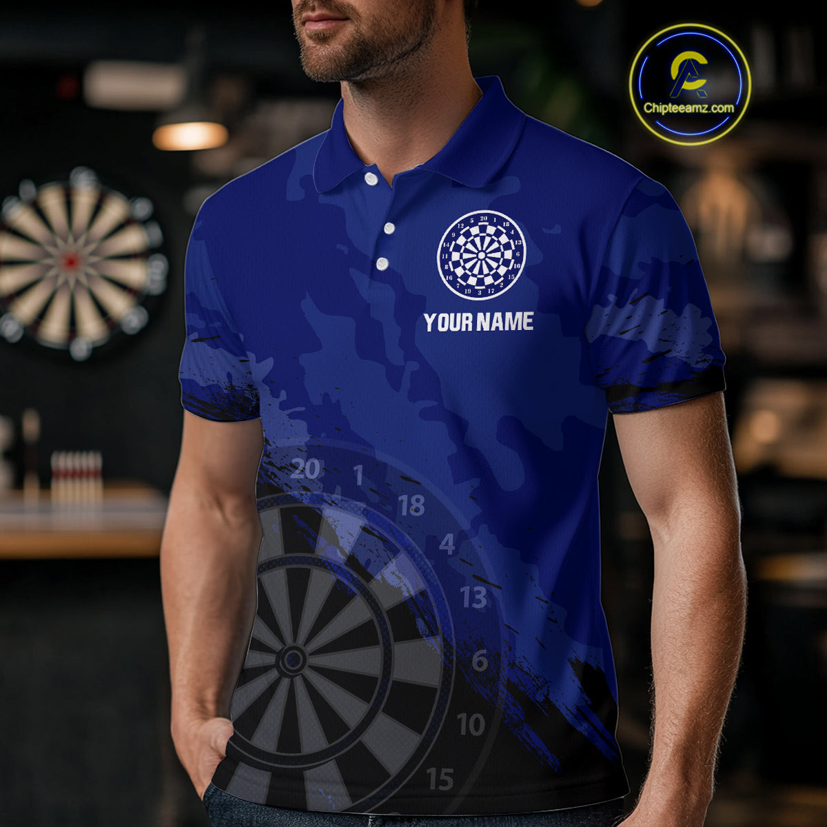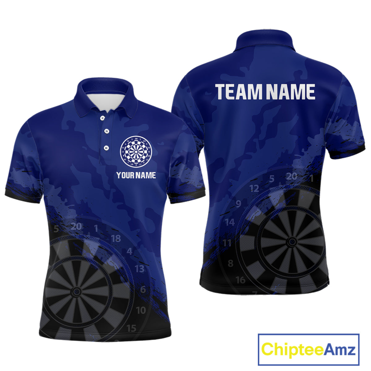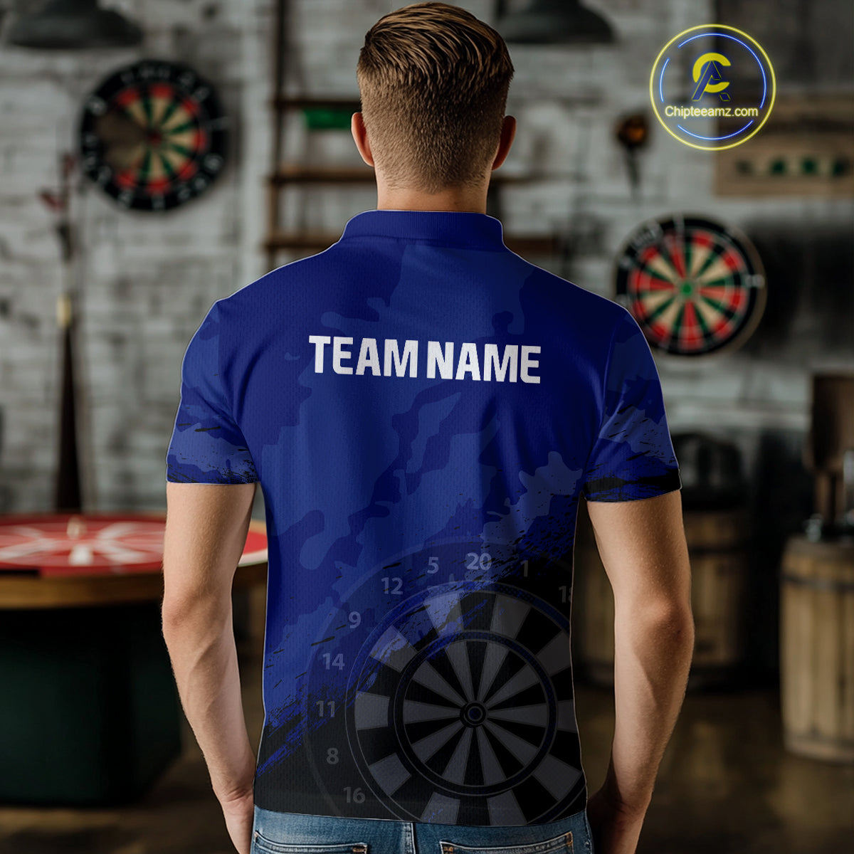 Men’s Custom Darts Team Shirt With Navy Pattern & Black Dartboard, Darts Jersey NYN0319