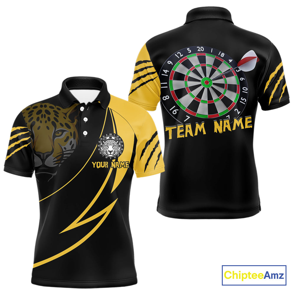 Men's Custom Darts Shirt - Yellow Panther With Dartboard & Arrow | Personalized Name NYN0323