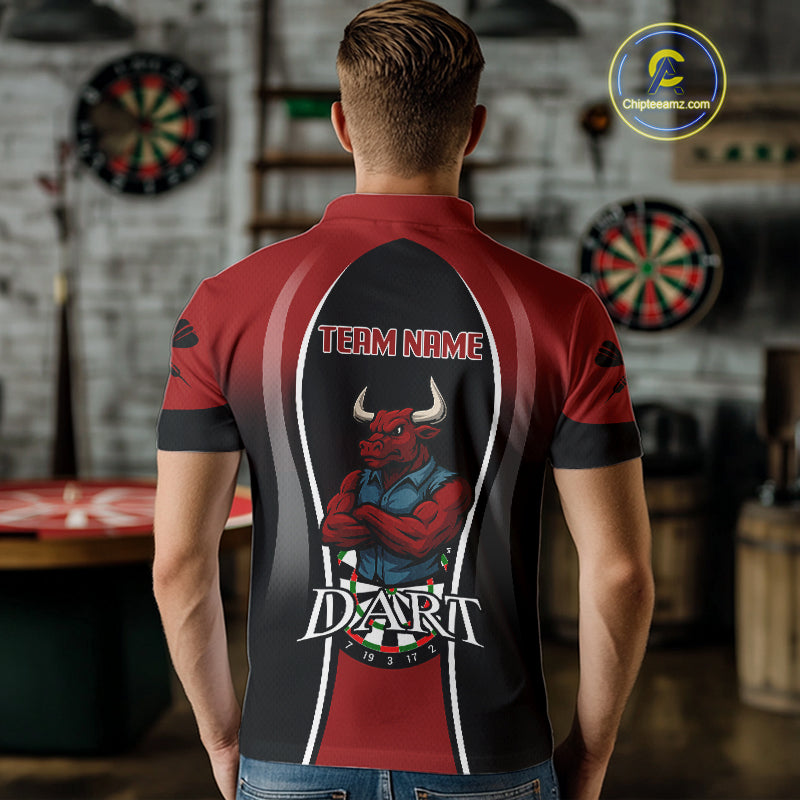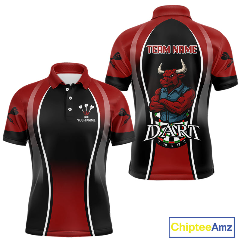 Men’s Custom Darts Shirt - Crimson Bull And Standard Dart Board | Personalized Name NYN0329