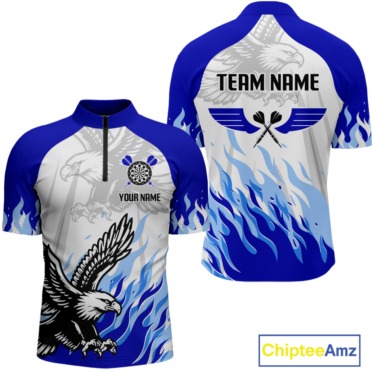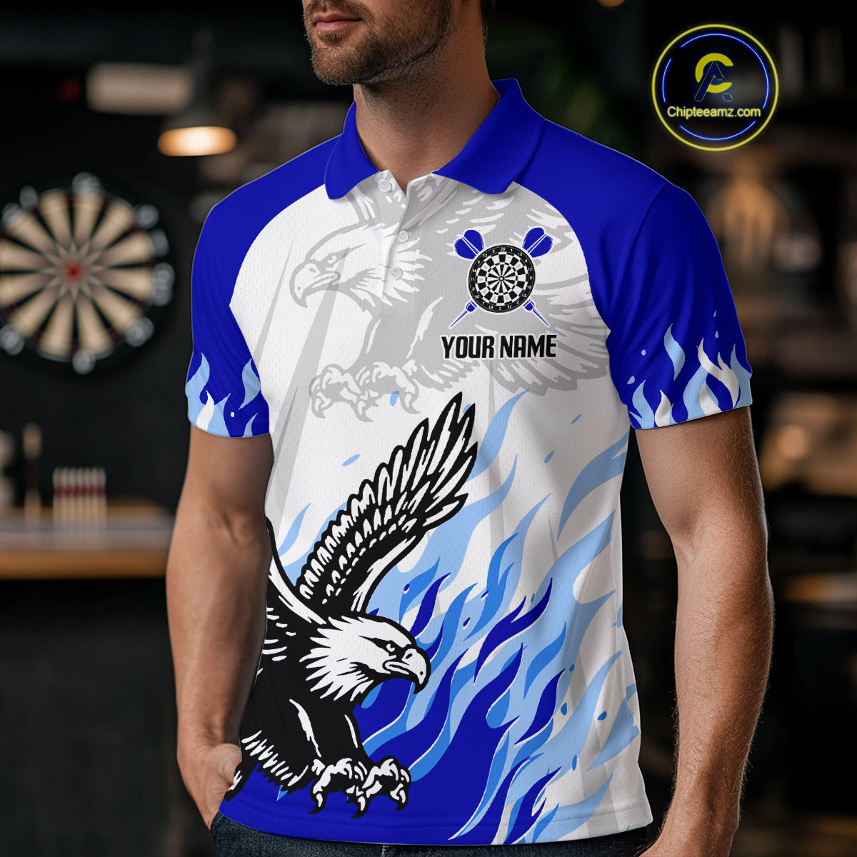Men's Custom Darts Shirt - Eagle With Wings Dart Arrow & Blue Flaming Pattern NYN0332