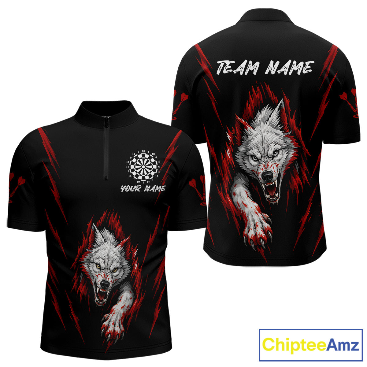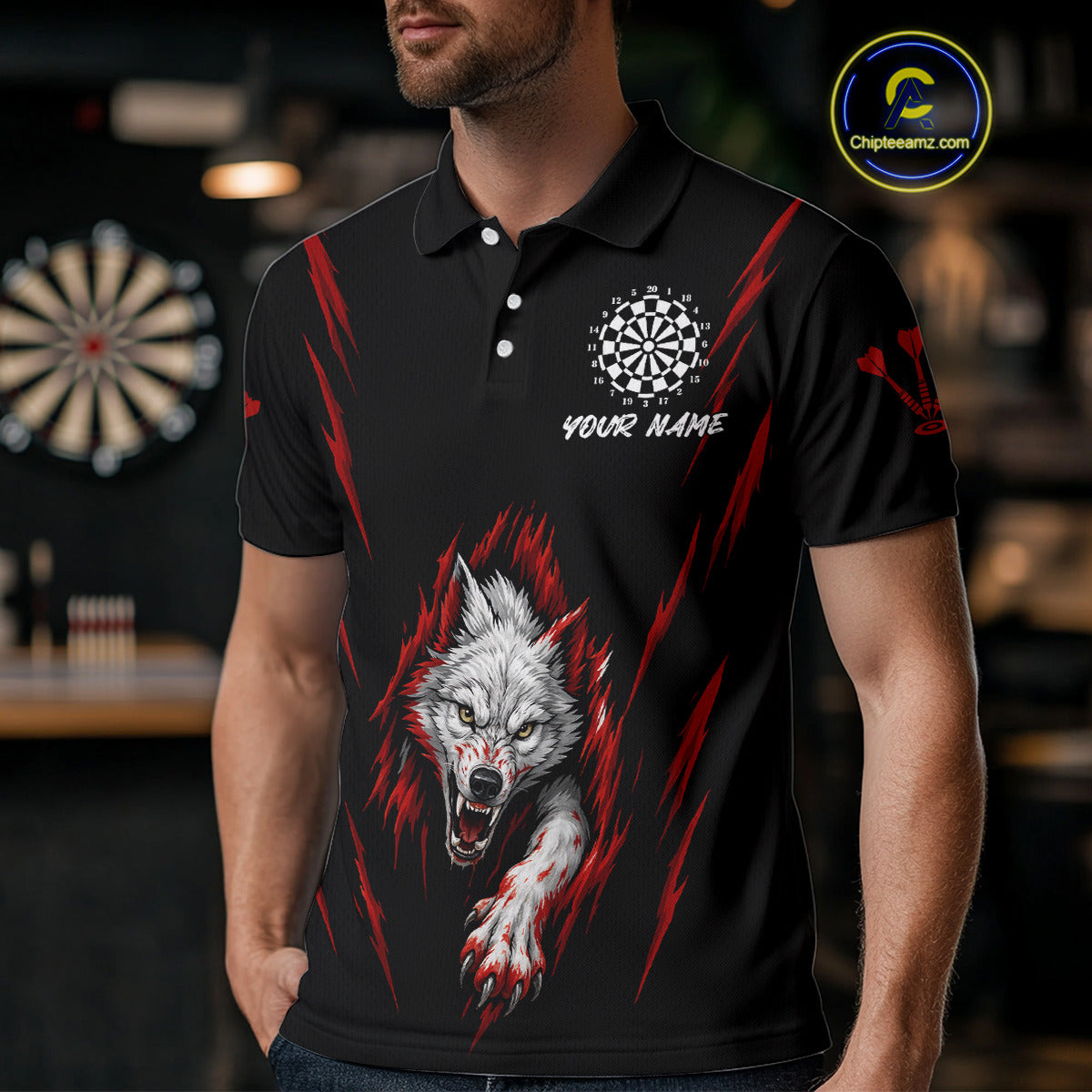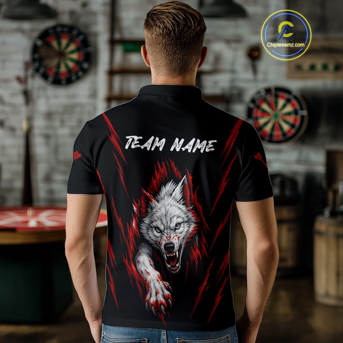 Custom Men's Dart Team Shirt -  Pearl Wolf Clawing - Personalized Team Name & Player NYN0335