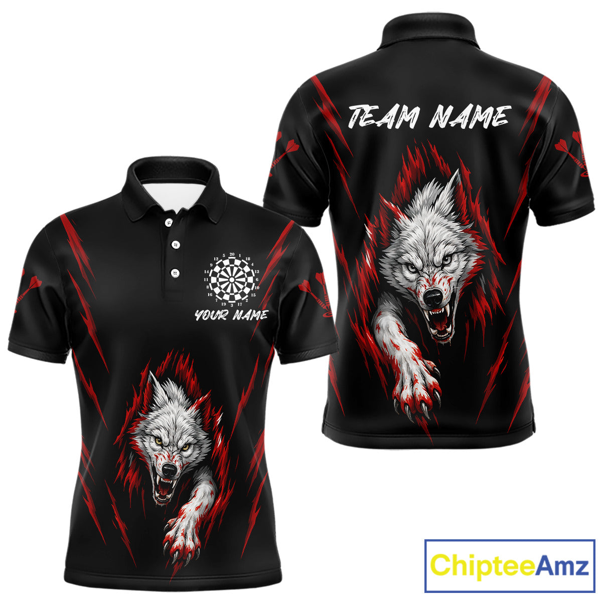 Custom Men's Dart Team Shirt - Pearl Wolf Clawing - Personalized Team Name & Player NYN0335