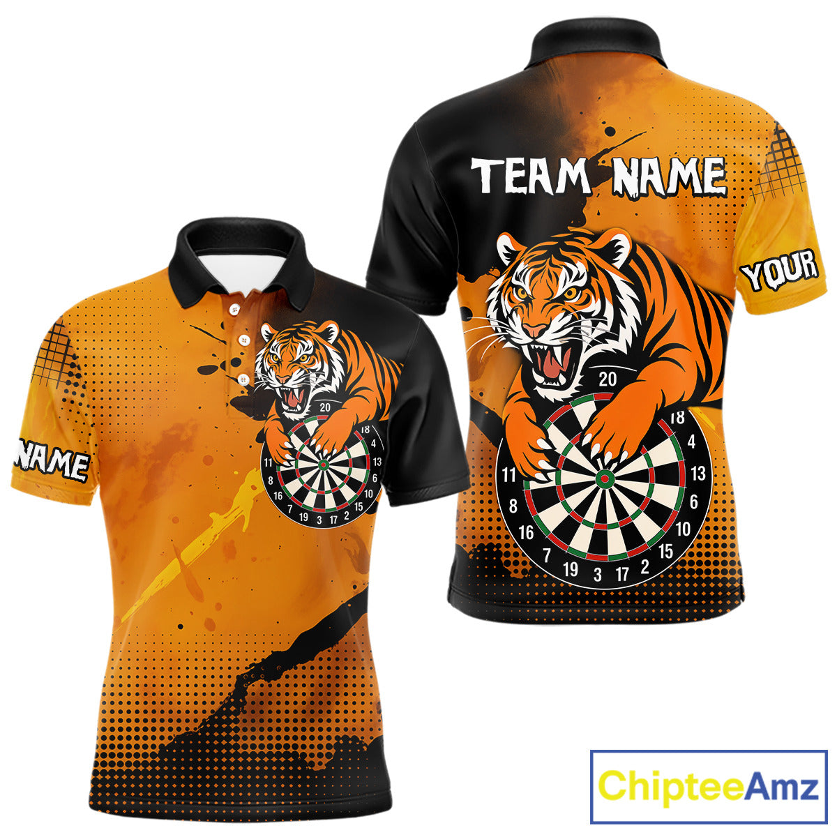 Roaring Tiger Dartboard Shirt - Rust & Black Darts Jersey With Custom Name For Men NYN0336