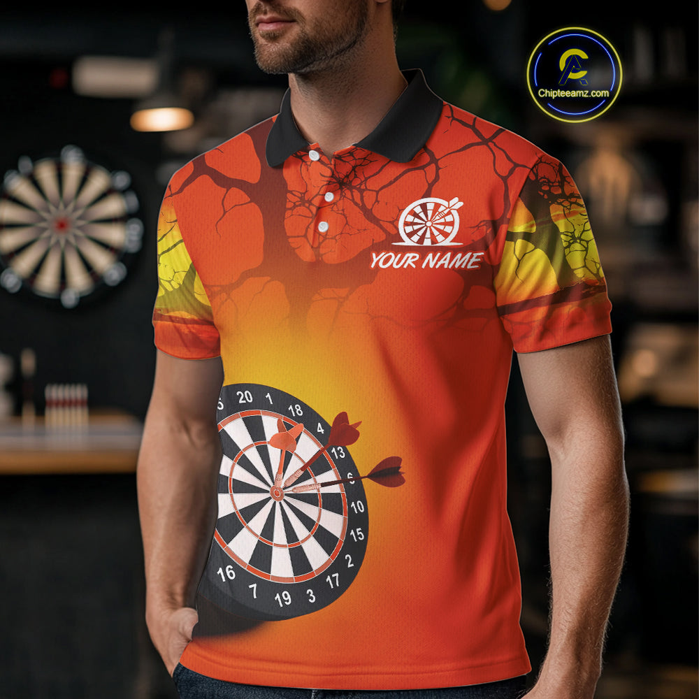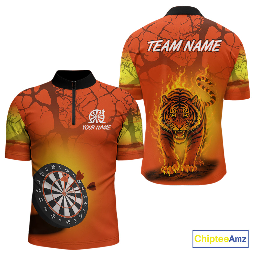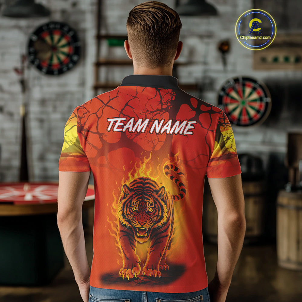 Flaming Tiger Orange Pattern Dartboard Darts Shirt For Men - Custom Name NYN0357