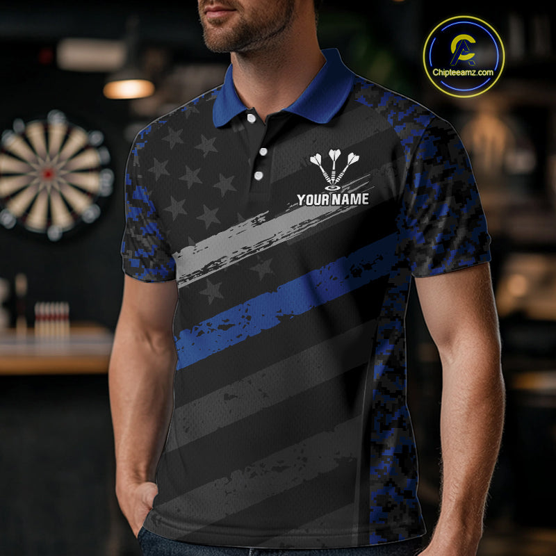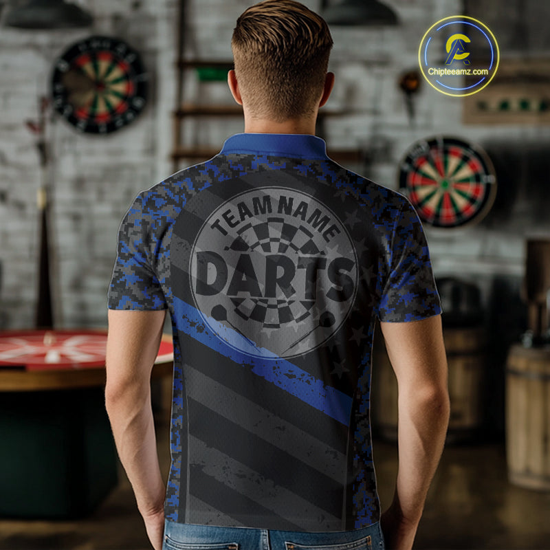Grey Darts & Azure Camo Pattern Darts Shirt For Men - Custom Team & Player Name NYN0360